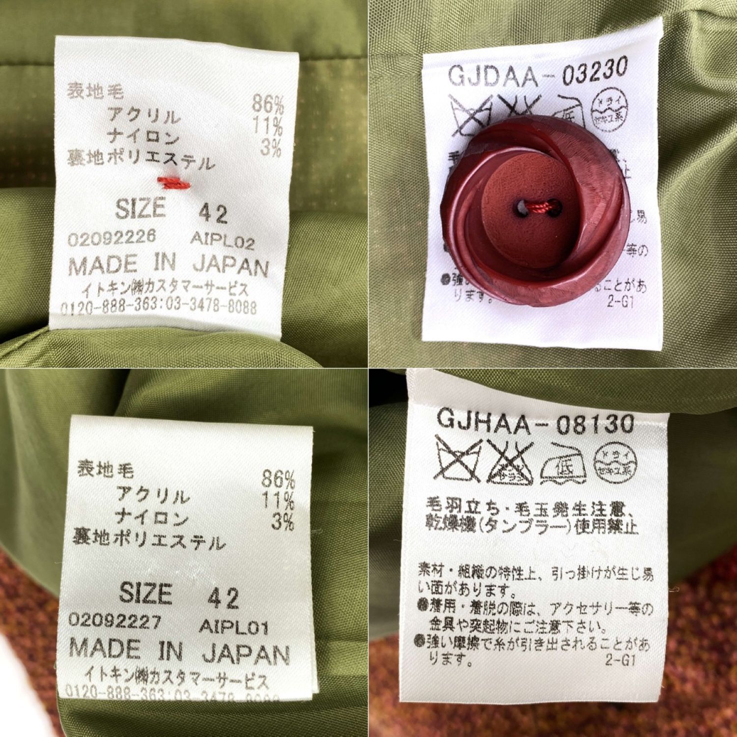 Jocomomola ホコモモラ ツイードジャケット 上下セット GJDAA-03230 ブラウン サイズ42