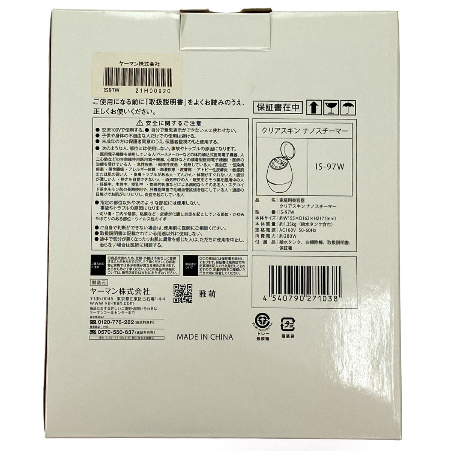 【商品名】中古 YA-MAN ヤーマン クリアスキンナノスチーマー IS-97W 未使用品 Sランク