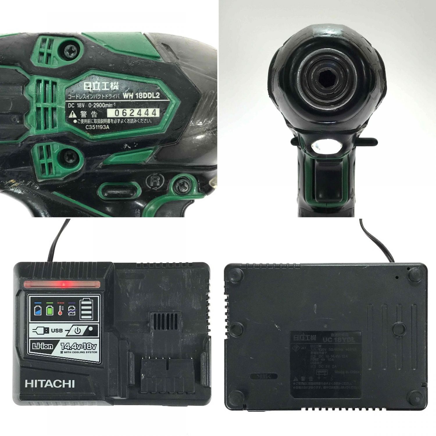 HITACHI 日立 18V 充電式インパクトドライバー WH18DDL2 グリーン 充電器・充電池2個・ケース付