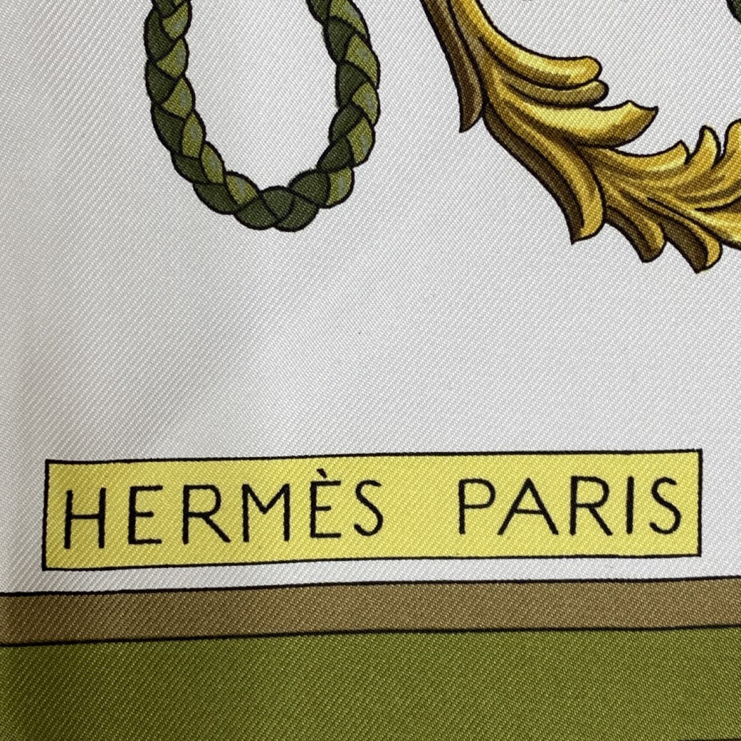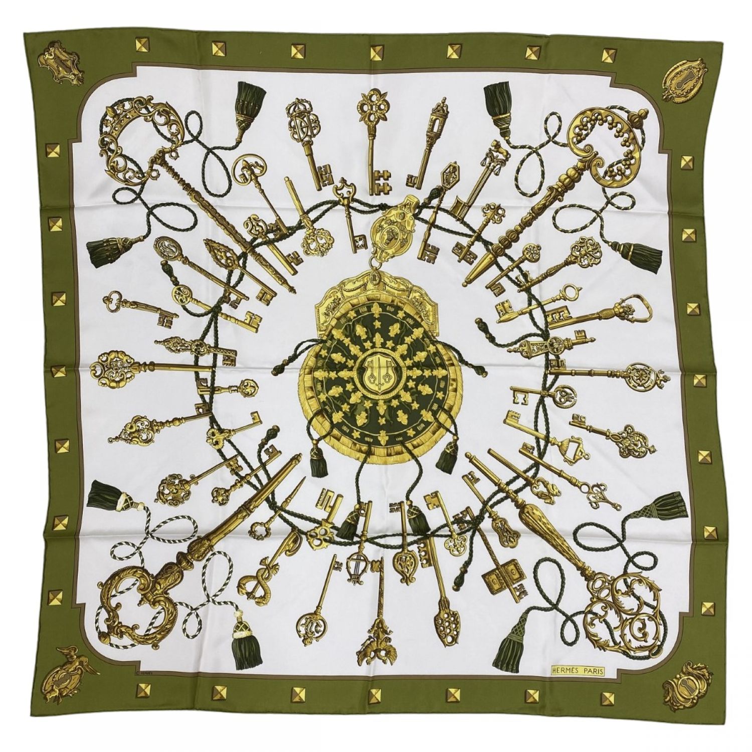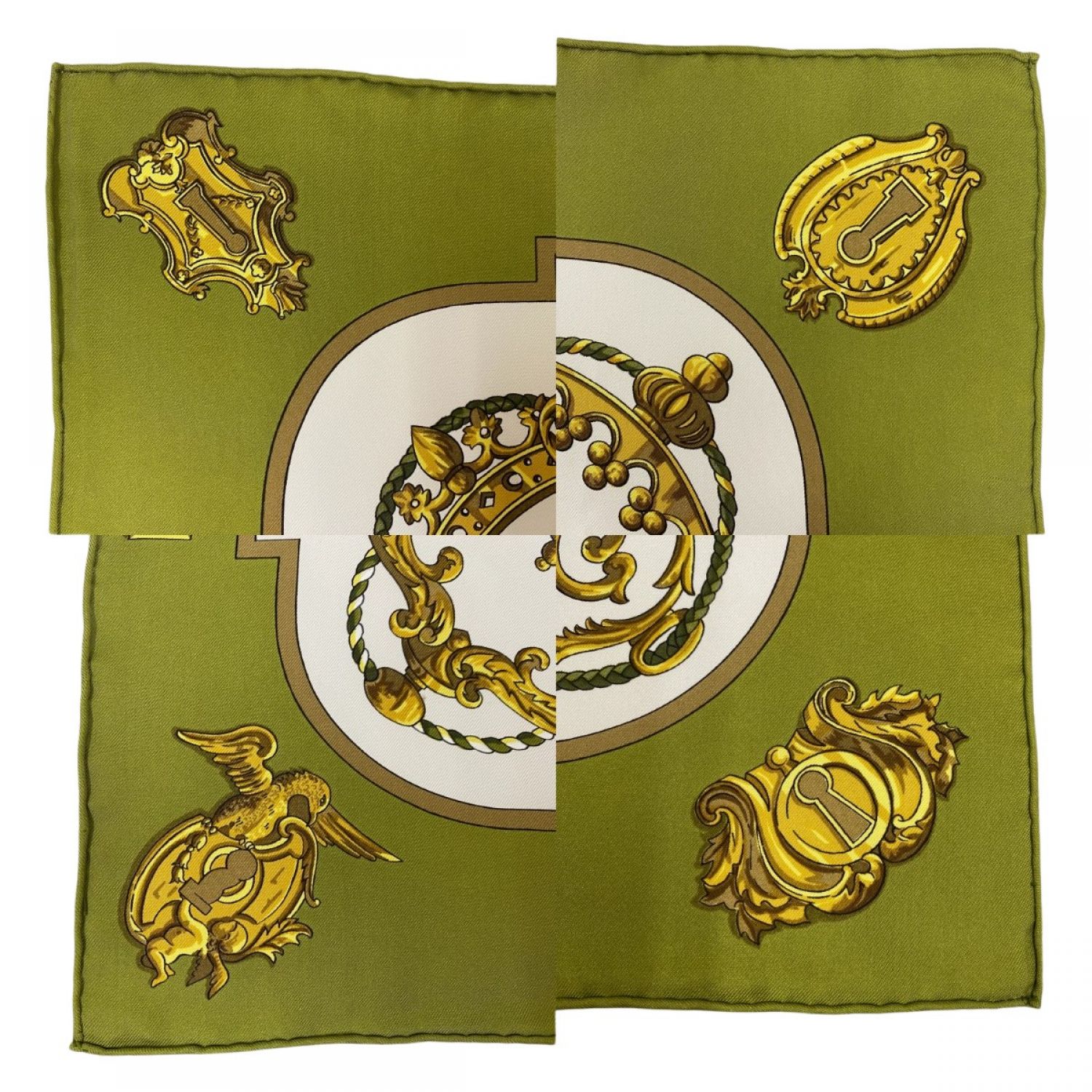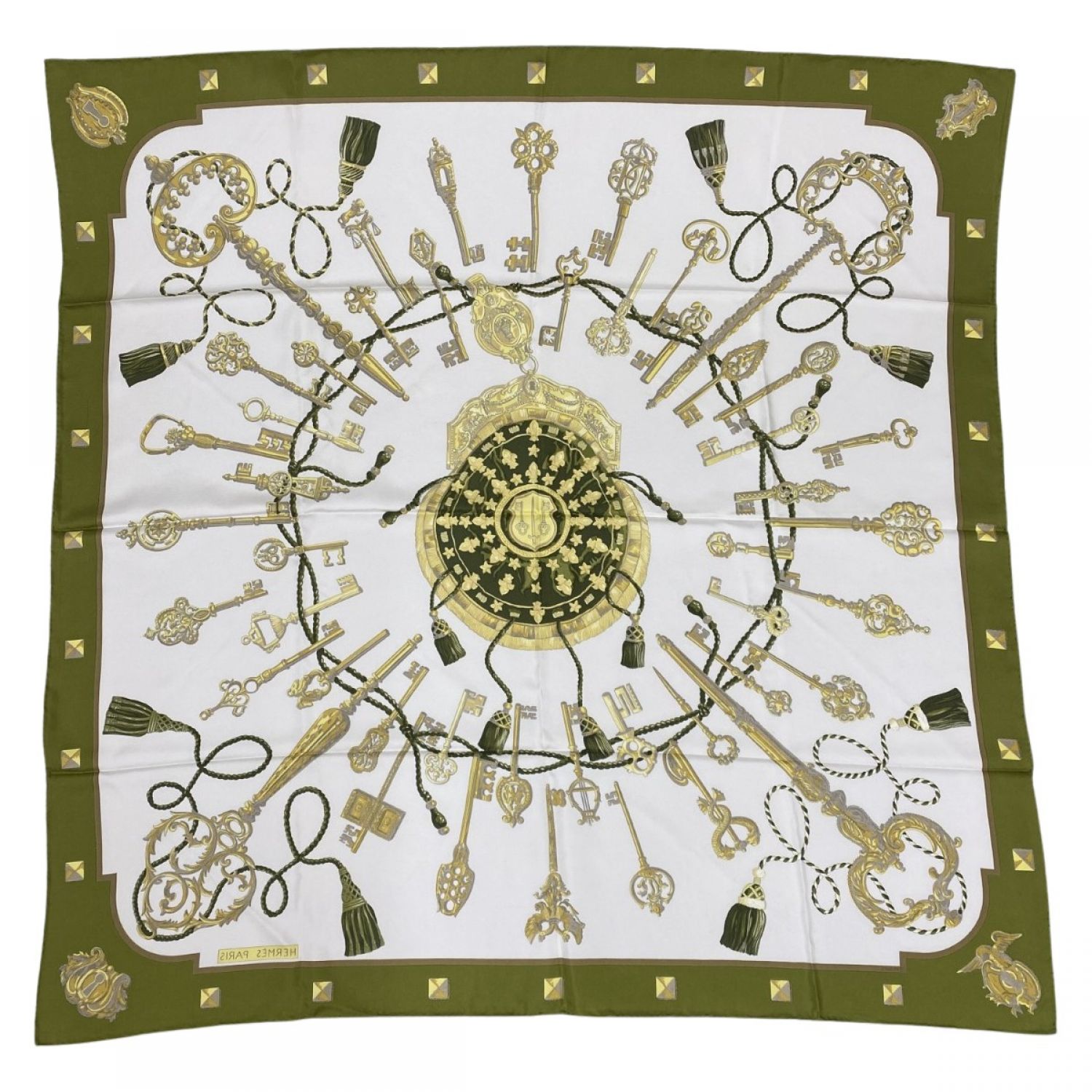 HERMES エルメス カレ90 鍵柄 大判シルクスカーフ オリーブ