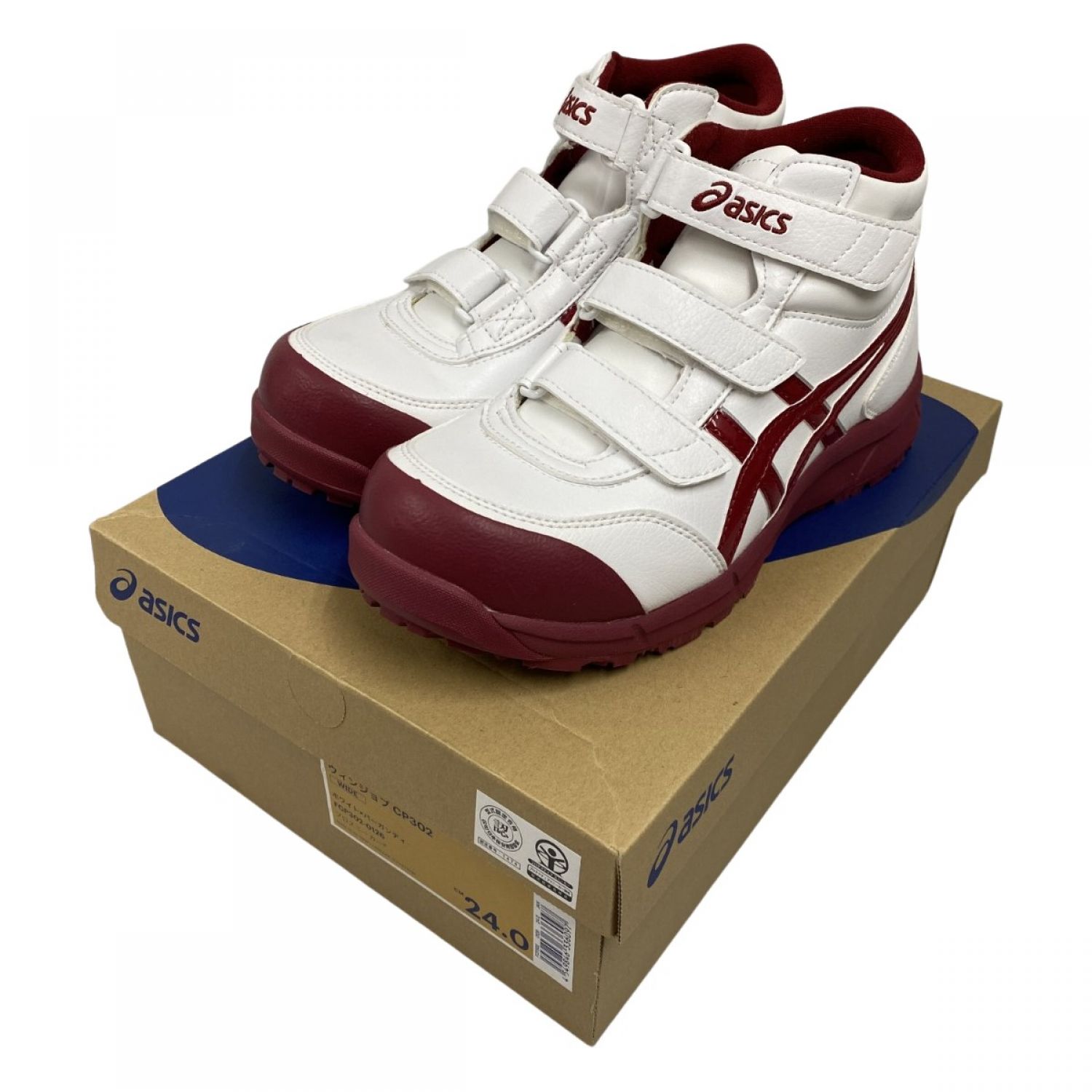 【商品名】中古 asics アシックス 安全靴 ウィンジョブ 24cm CP302-0126 ホワイト×バーガンディ Bランク