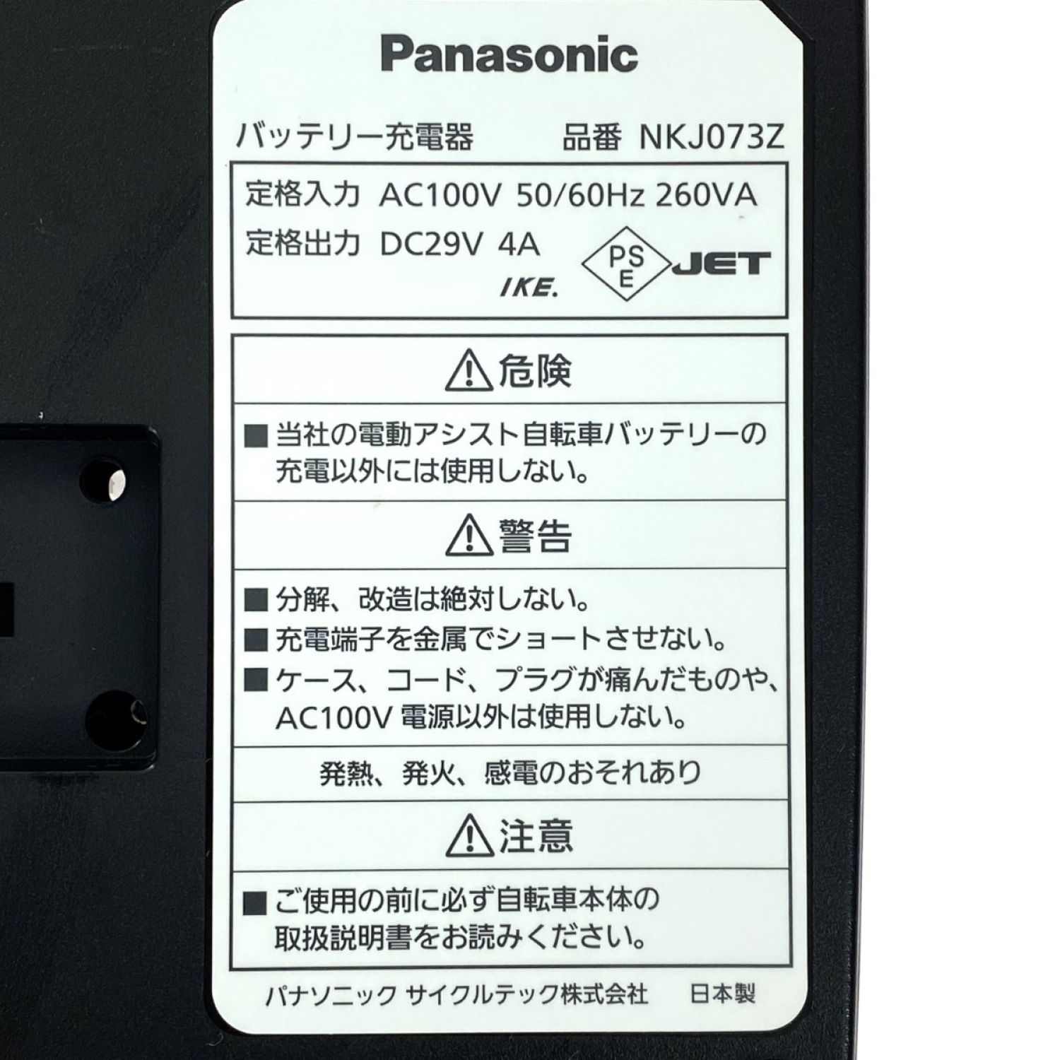 Panasonic パナソニック 電動自転車専用 スタンド式充電器 NKJ073Z 動作未確認