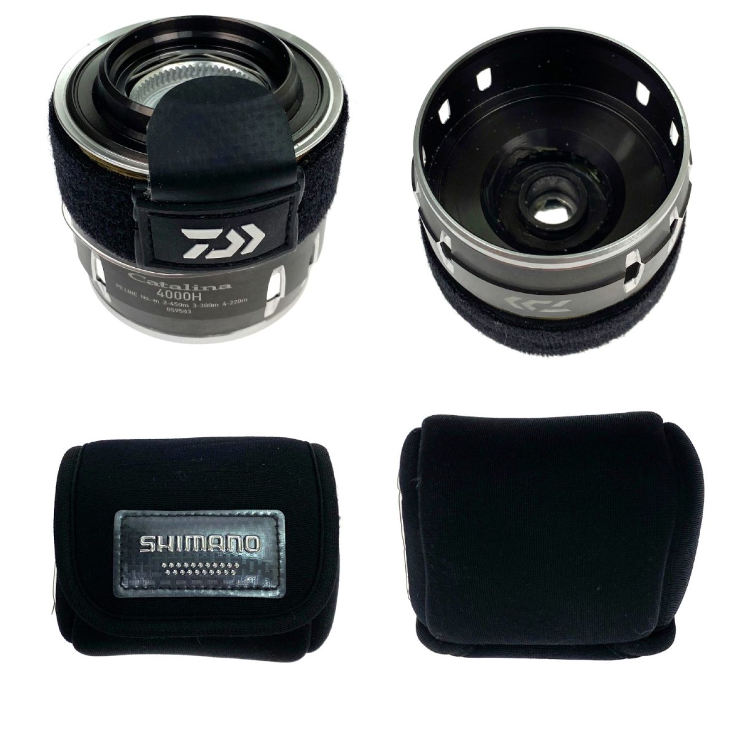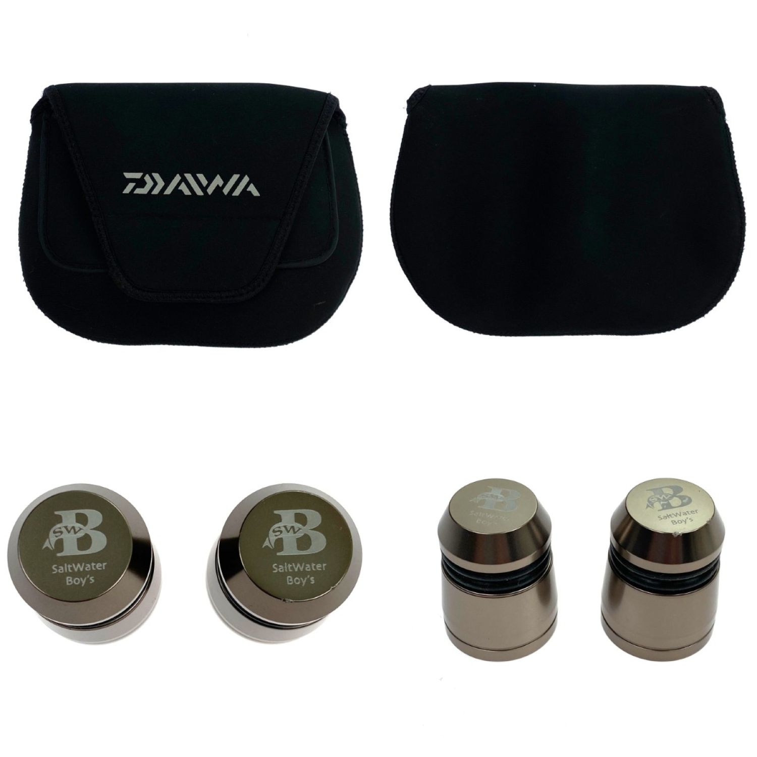 【付属品】取扱説明書,リールポーチ,調整ワッシャー ・スプールバンド・替えスプール・スプールケース(シマノ製)・リールラインストッパー(SaltWaterBoy’s製)×2個・外箱