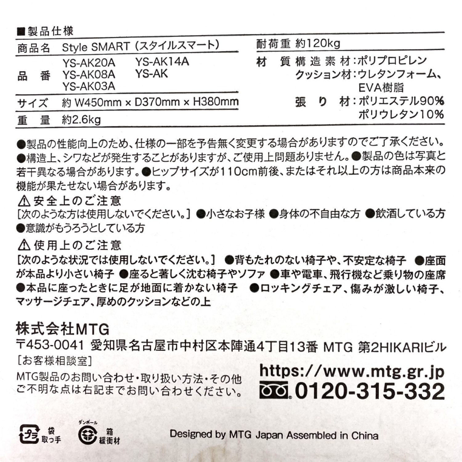 MTG Style SMART スタイルスマート YS‐AK03A ブラック 姿勢サポートシート 未使用品