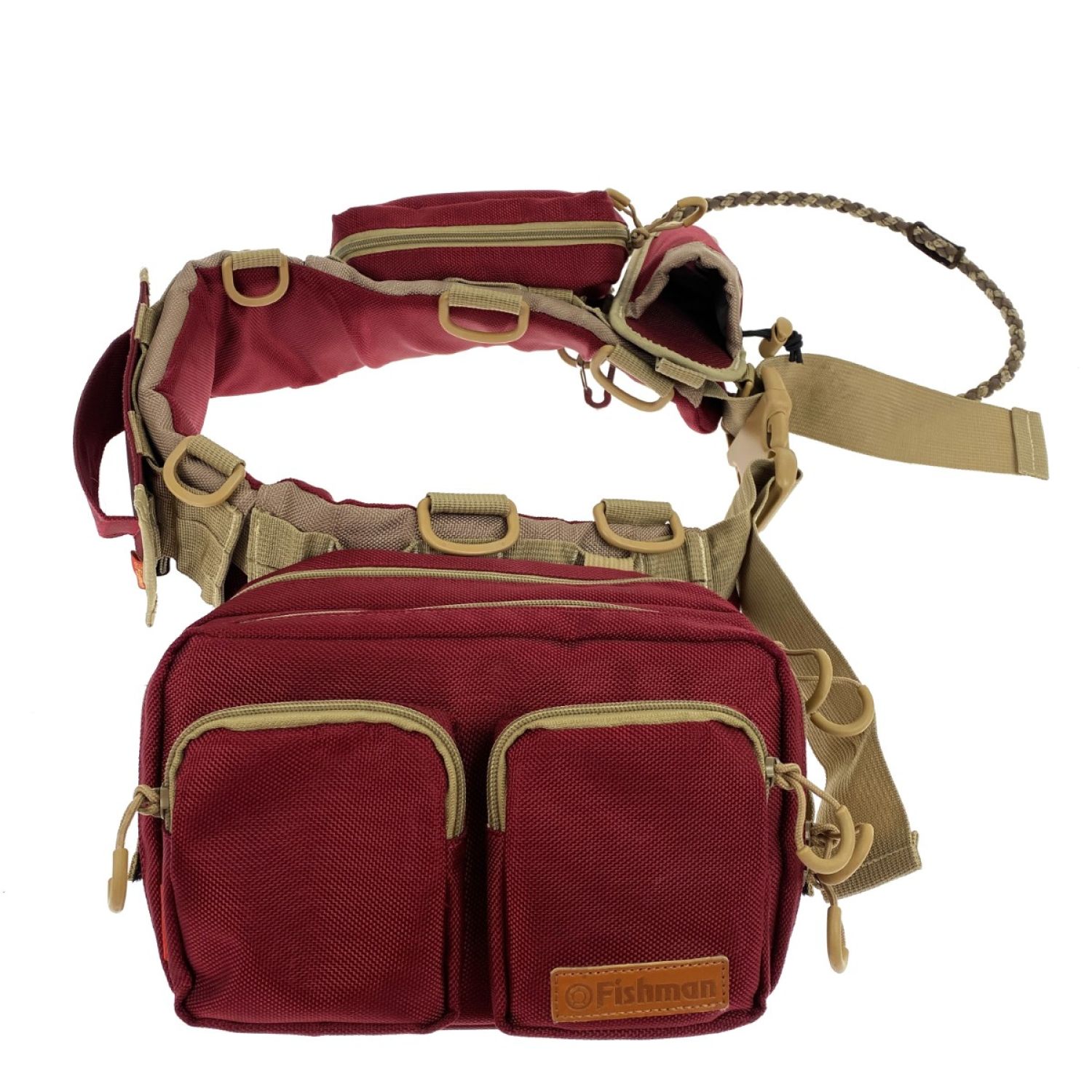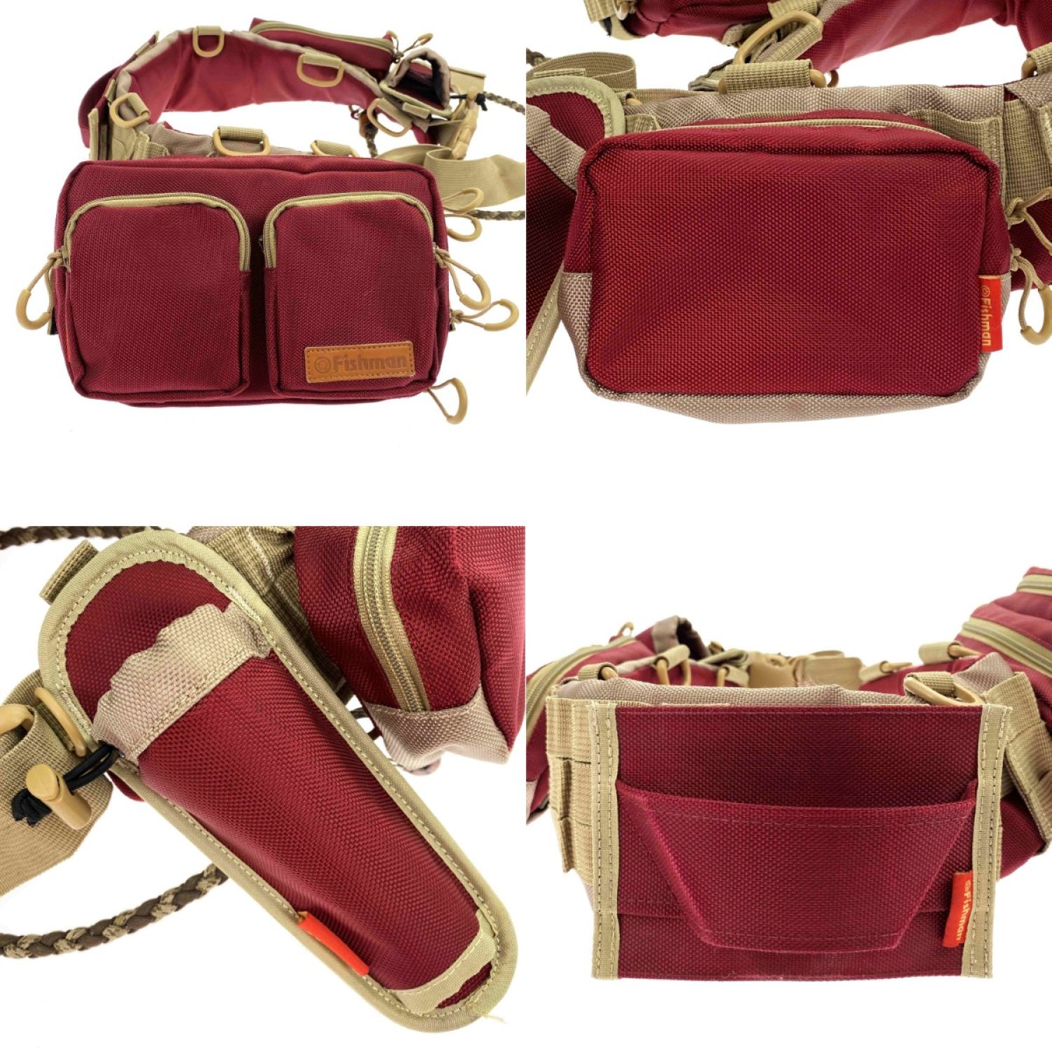 【商品名】中古 Fishman フィッシュマン ムーバブルシステムベルト エンジ/カーキ ルアーバックほか付属品付き Bランク