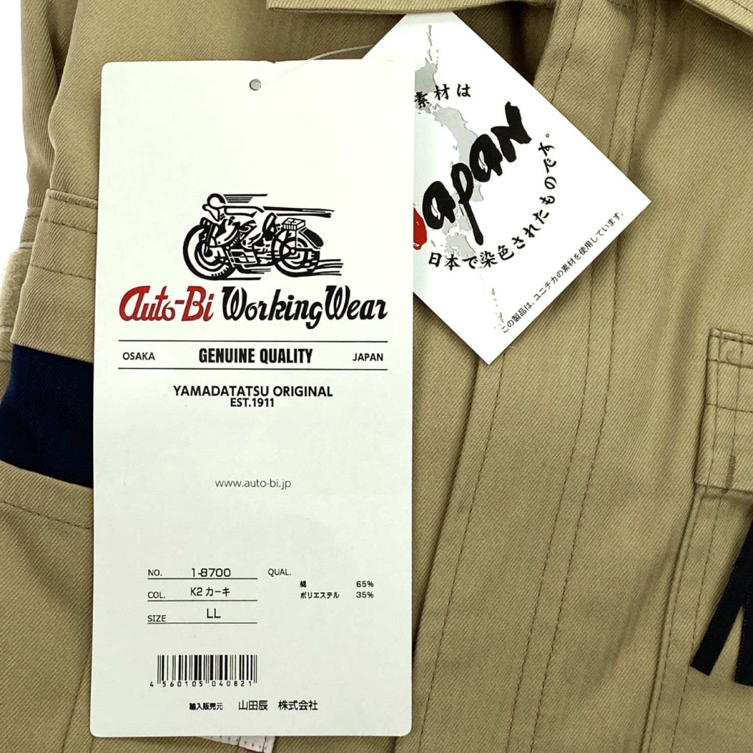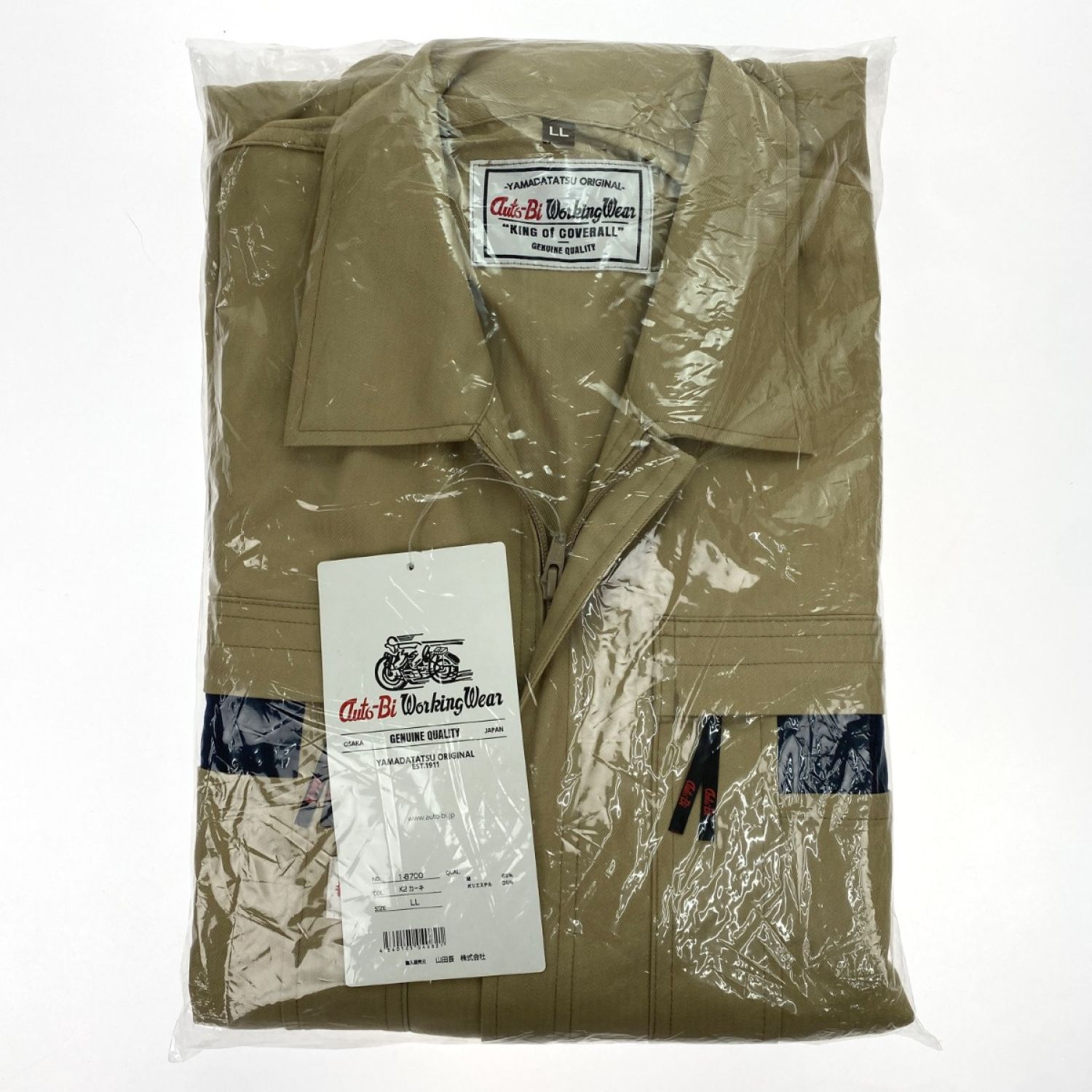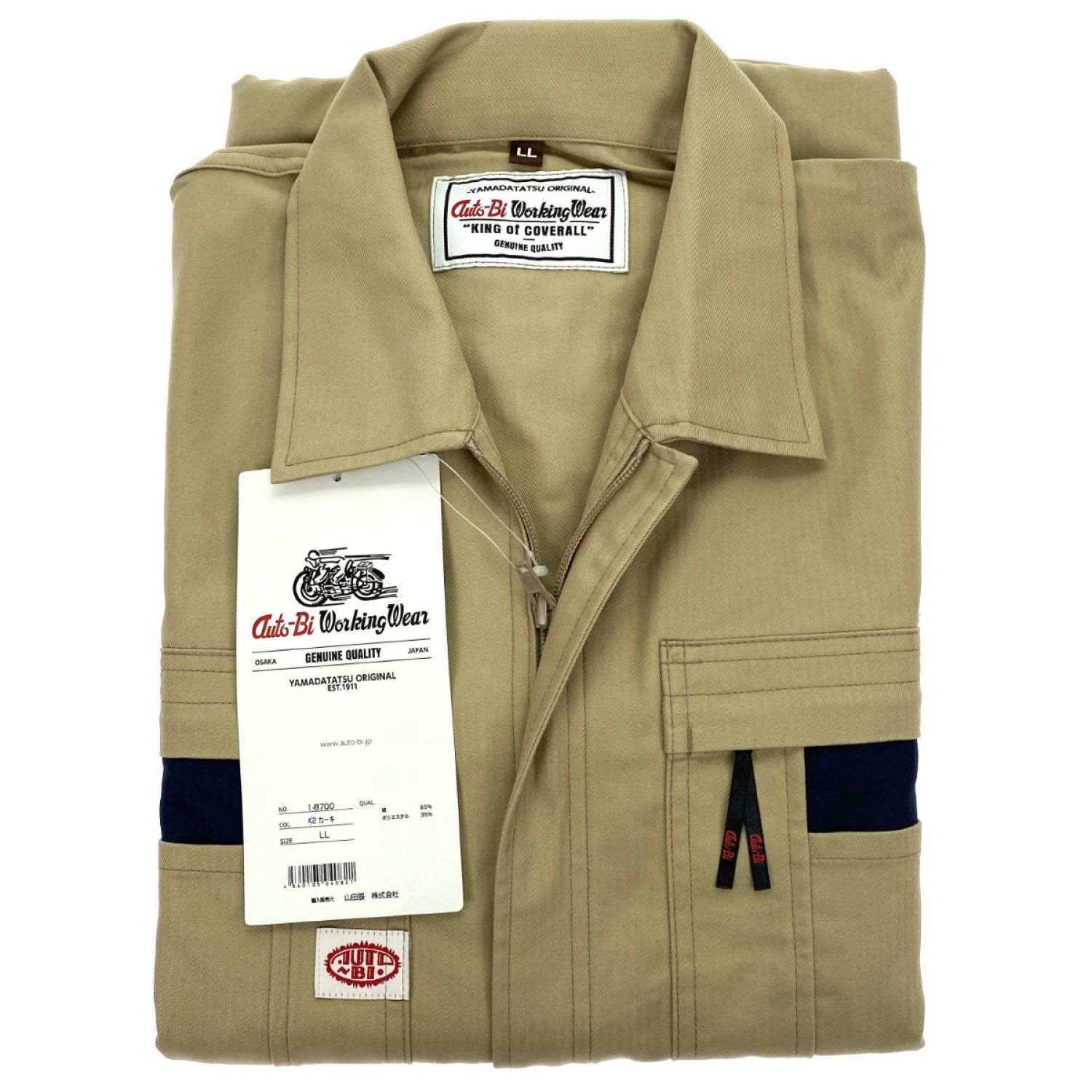 山田辰 Auto-Bi つなぎ服 1-8700 カーキ LLサイズ 長袖 ストライプ調