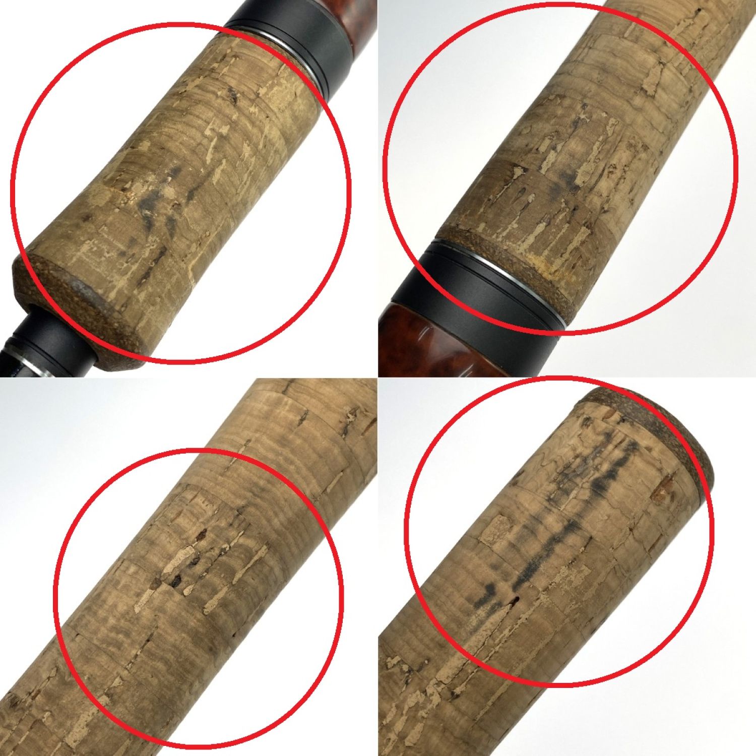 グリップのコルク部分には黒ずみや目抜けなど使用感がございます。