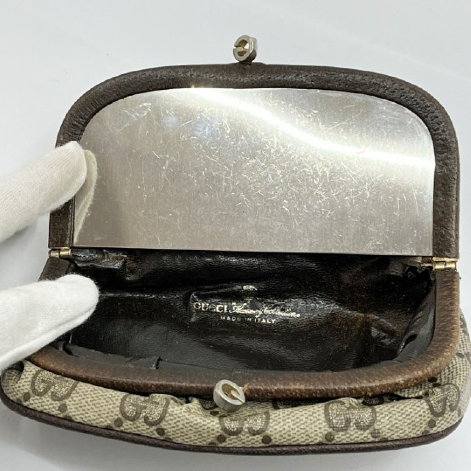 GUCCI グッチ OLD GUCCI コスメポーチ 中ミラー 256998 ブラウン