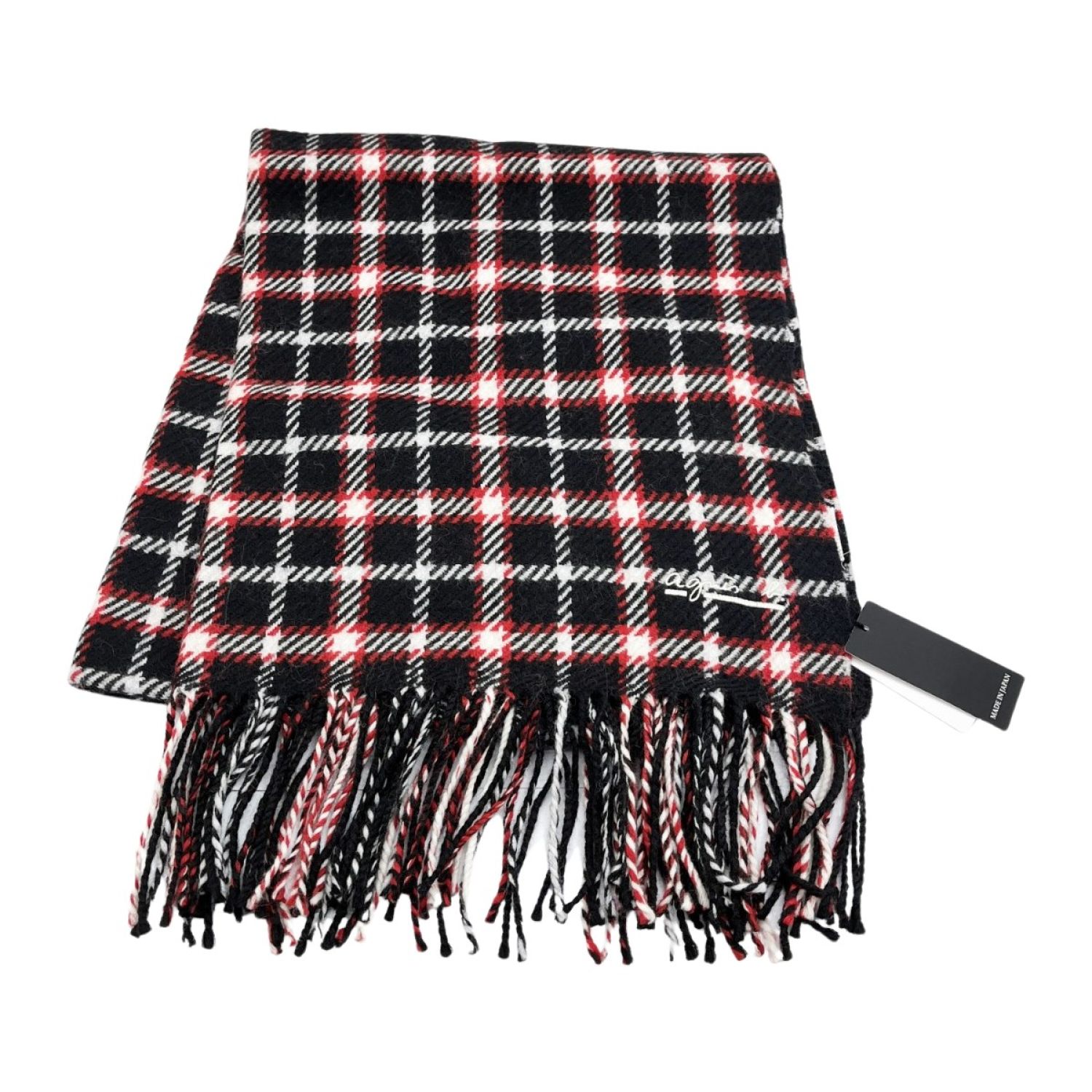 agnes b アニエスベー マフラー チェック柄 タグ付 レディース 未使用品 レッド ブラック