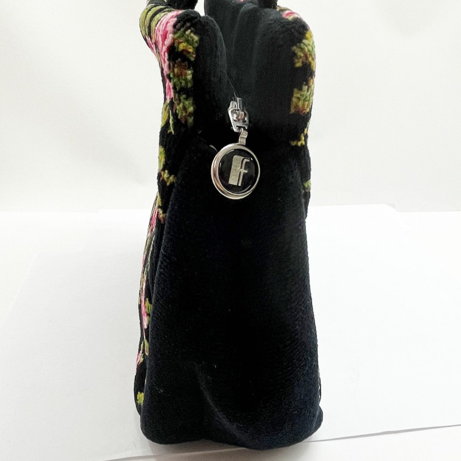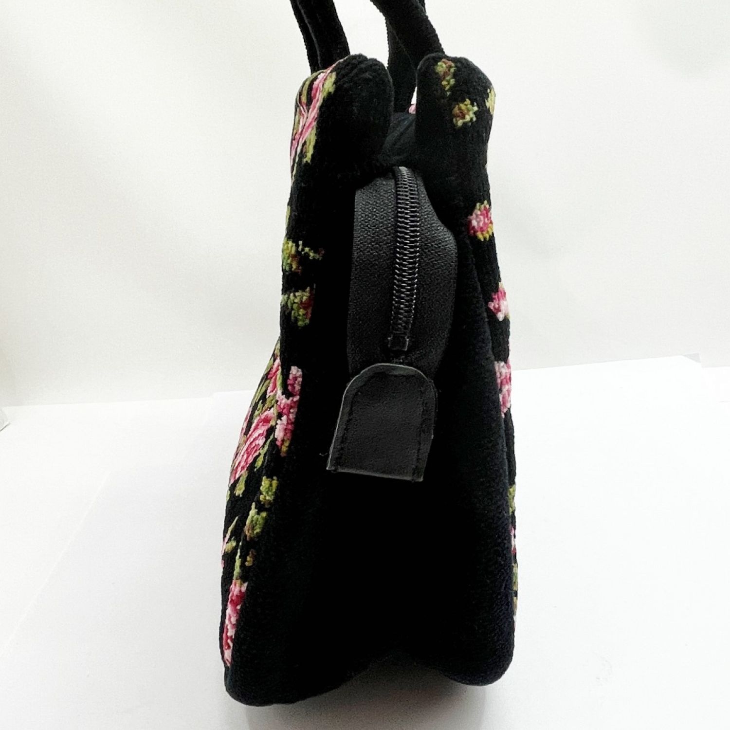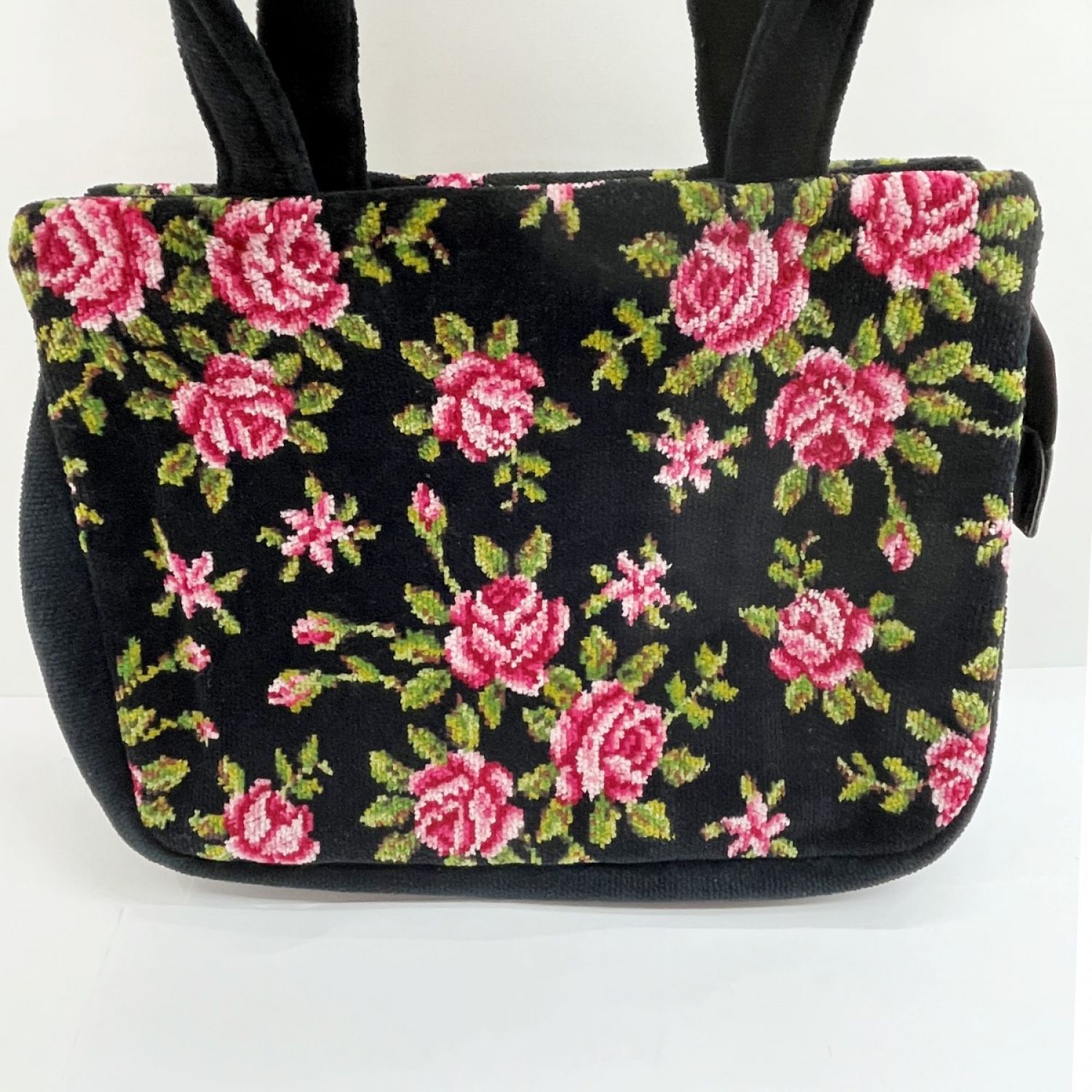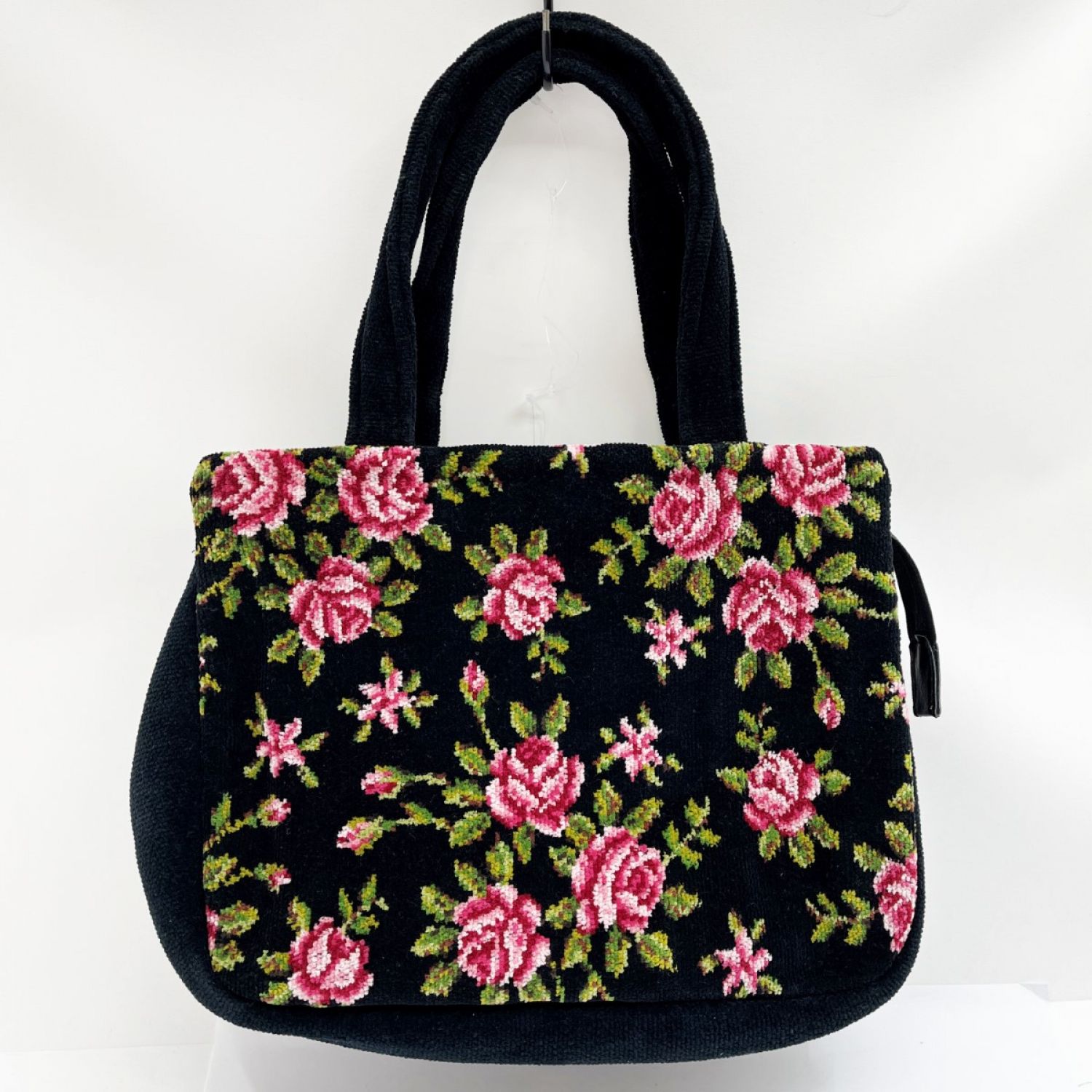 【商品名】中古 FEILER フェイラー ハンドバッグ トート バラ柄 黒/ピンク薔薇 x ピンク Aランク