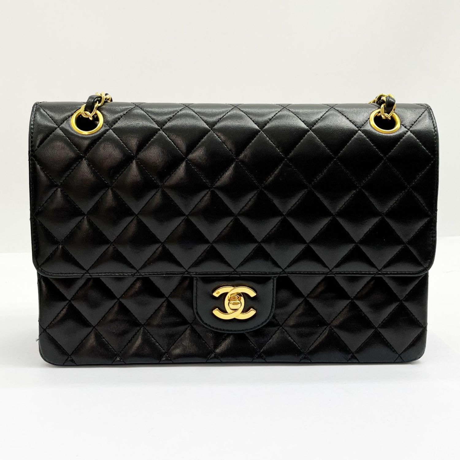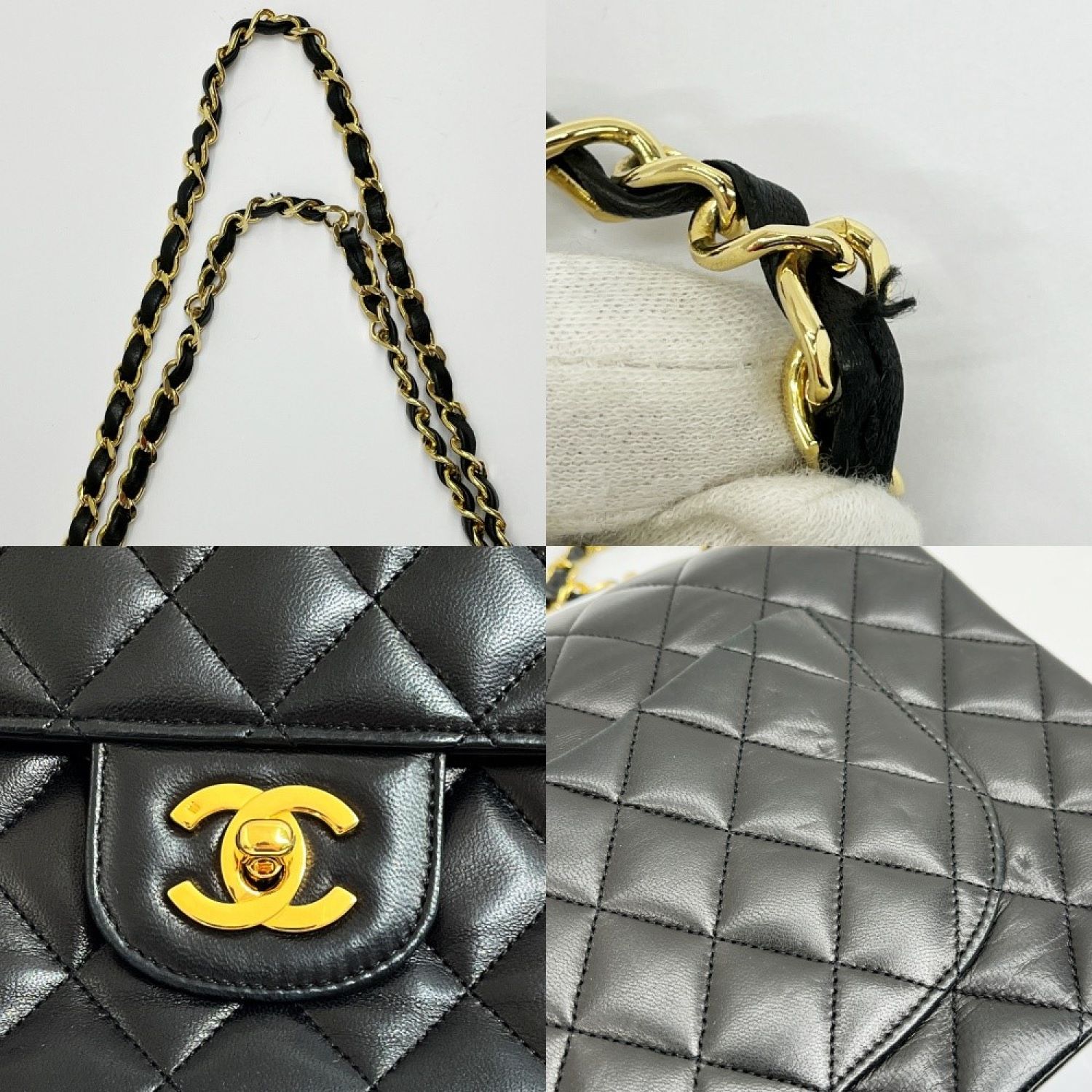 CHANEL シャネル マトラッセ Wフラップ チェーン ショルダー ブラック x ゴールド