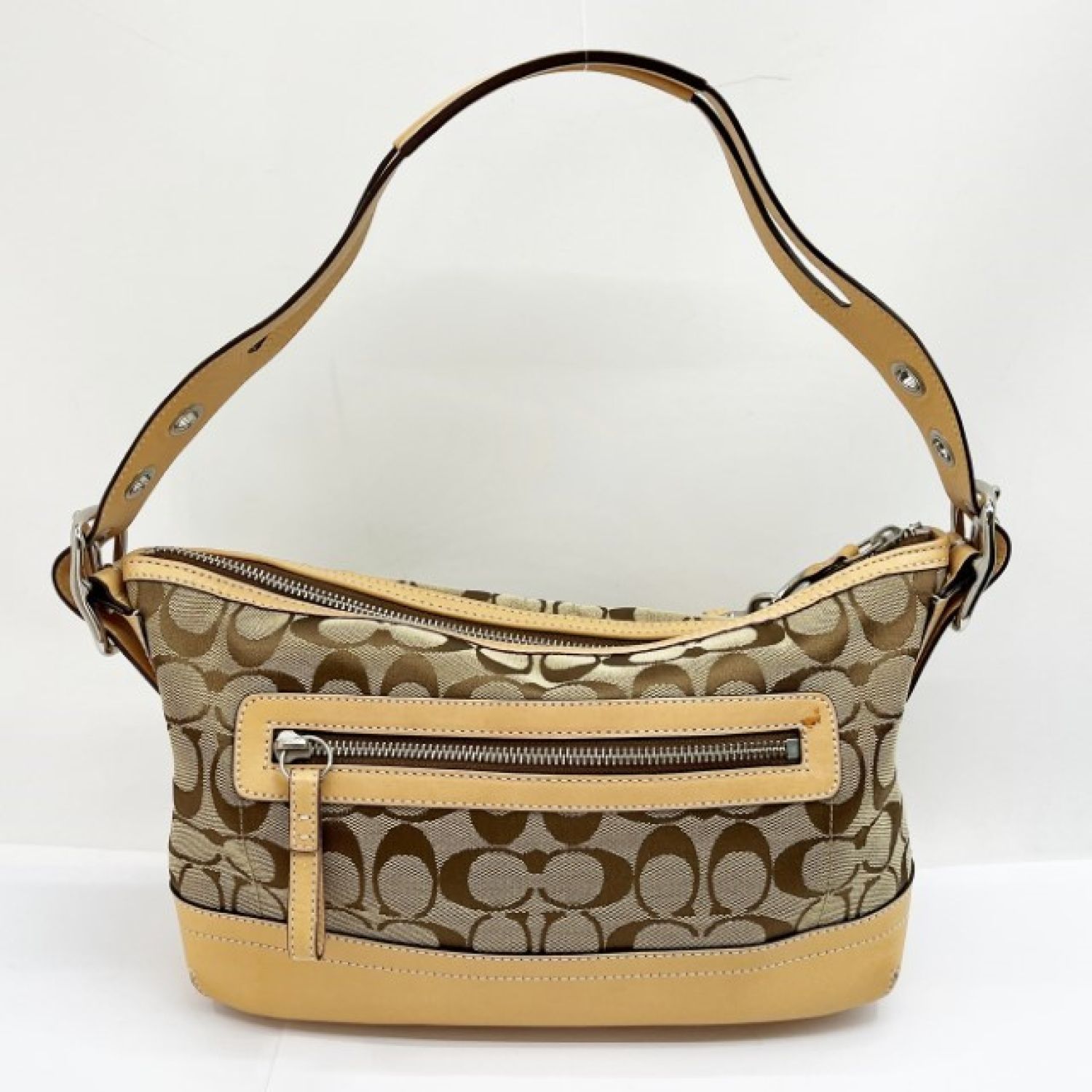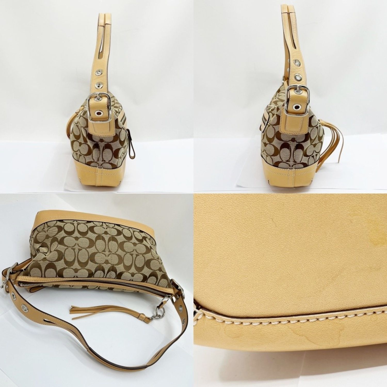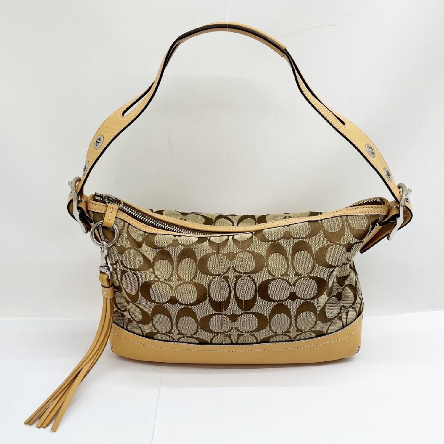 【商品名】中古 COACH コーチ シグネチャー ショルダーバッグ 肩掛け キャンバス 9363 ベージュ/茶 Bランク