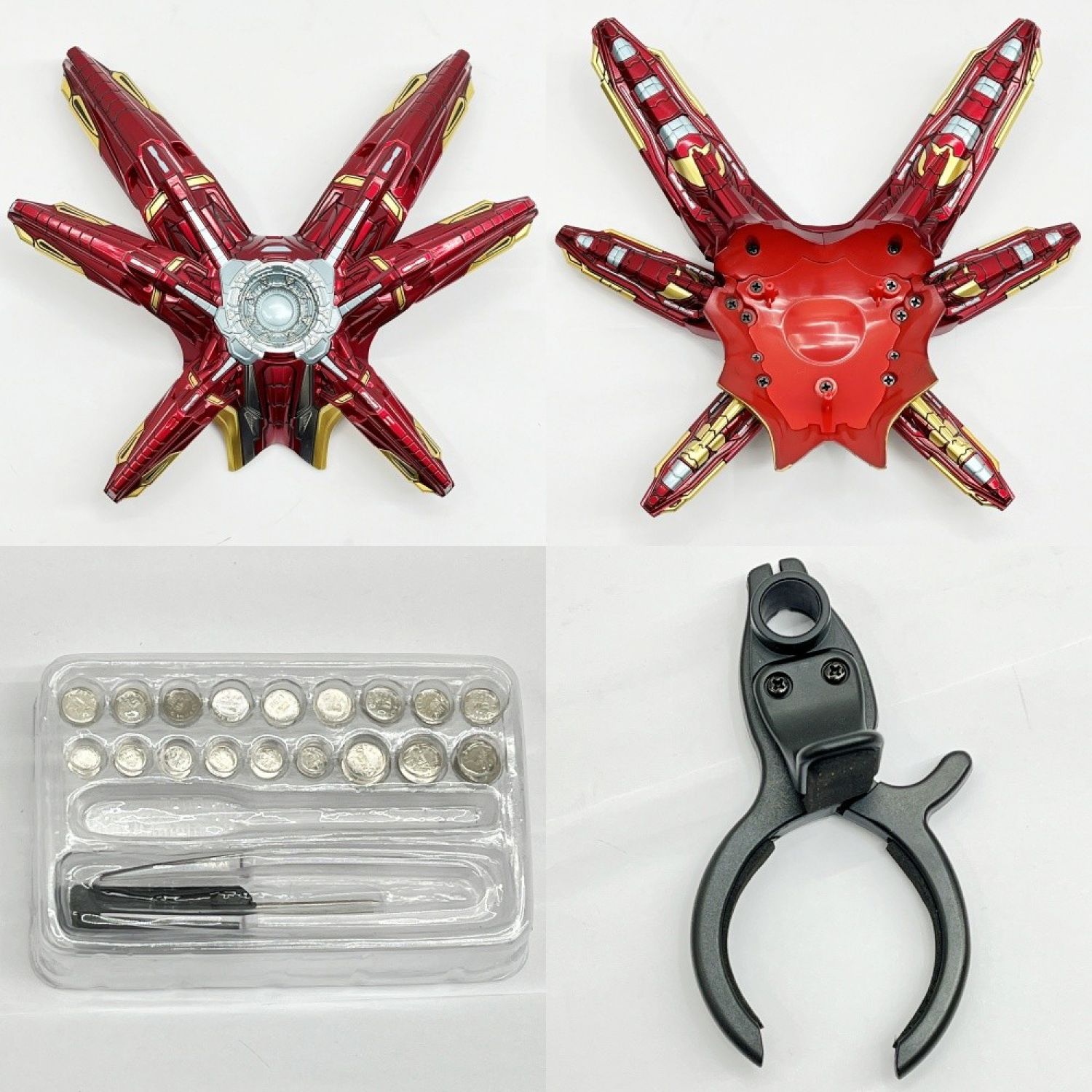 【付属品】 差し替え用ヘッド(トニー・スターク)、ナノ・ライトニング・リフォーカサー、差し替え用前腕部パーツ(ナノ・ガントレット)、差し替え用ハンドパーツ(×4)、特製台座