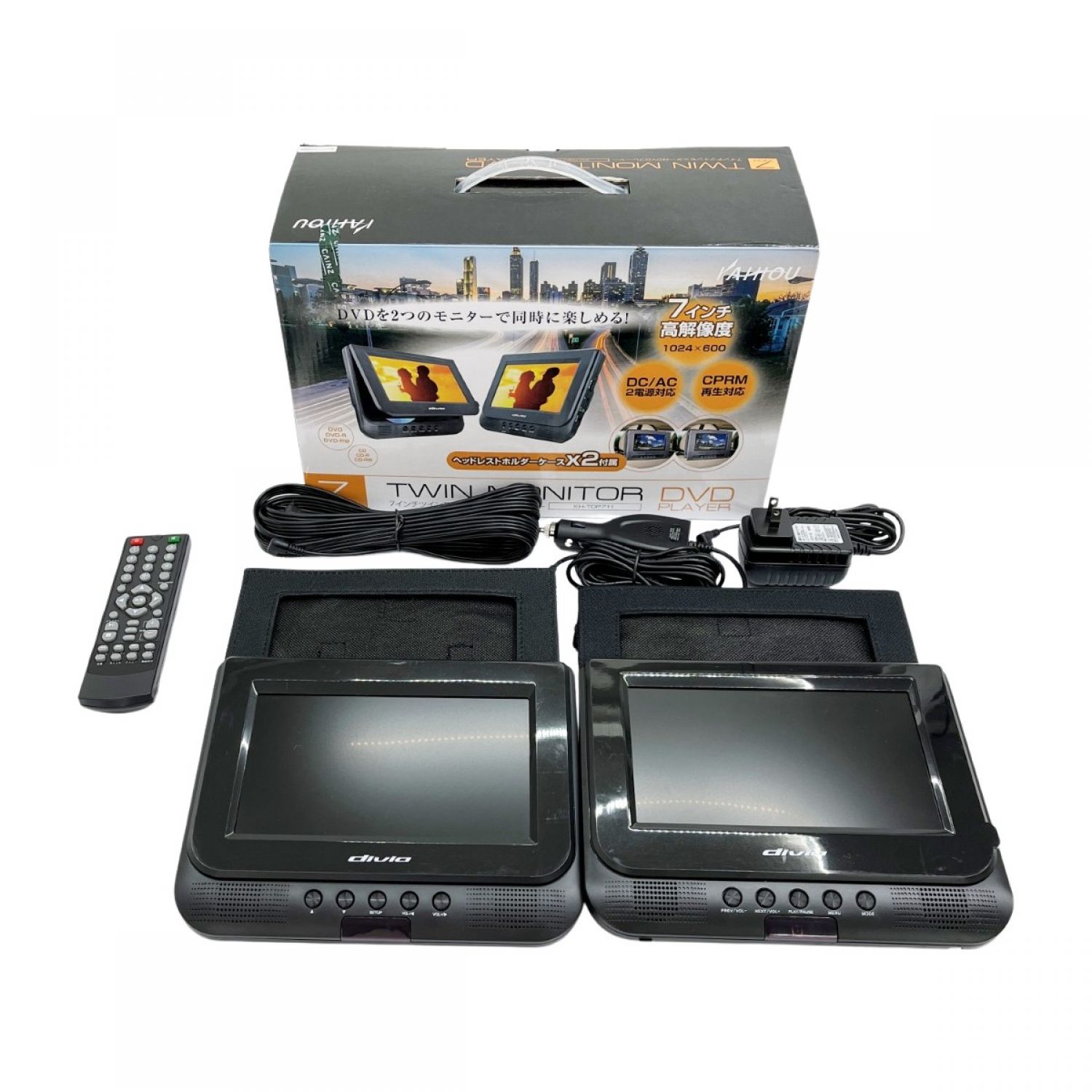 【商品名】中古 KAHIOU 7インチツインモニター DVDプレーヤー KH-TDP711 ブラック Bランク