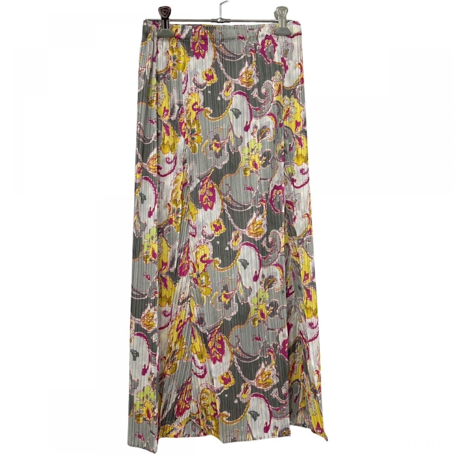 【商品名】中古 ISSEY MIYAKE イッセイミヤケ プリーツスカート レディース グレー×イエロー×ピンク Aランク