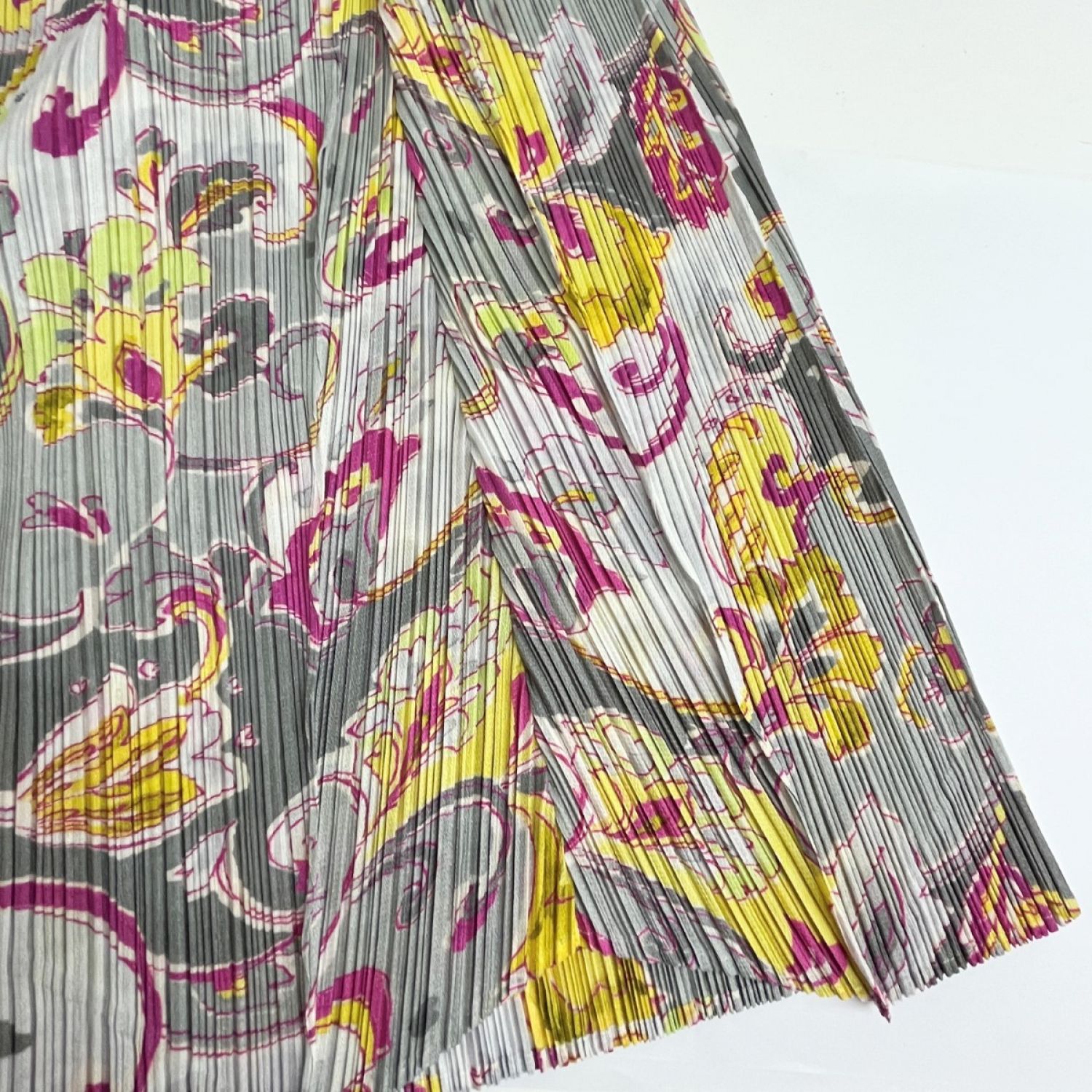 ISSEY MIYAKE イッセイミヤケ プリーツスカート レディース グレー×イエロー×ピンク