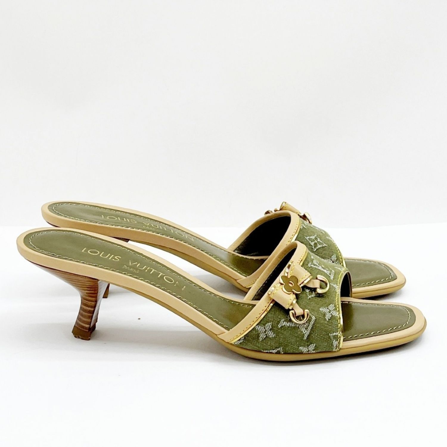 LOUIS VUITTON ルイヴィトン サンダル ミュール 37 1/2 AR0026 オリーブ