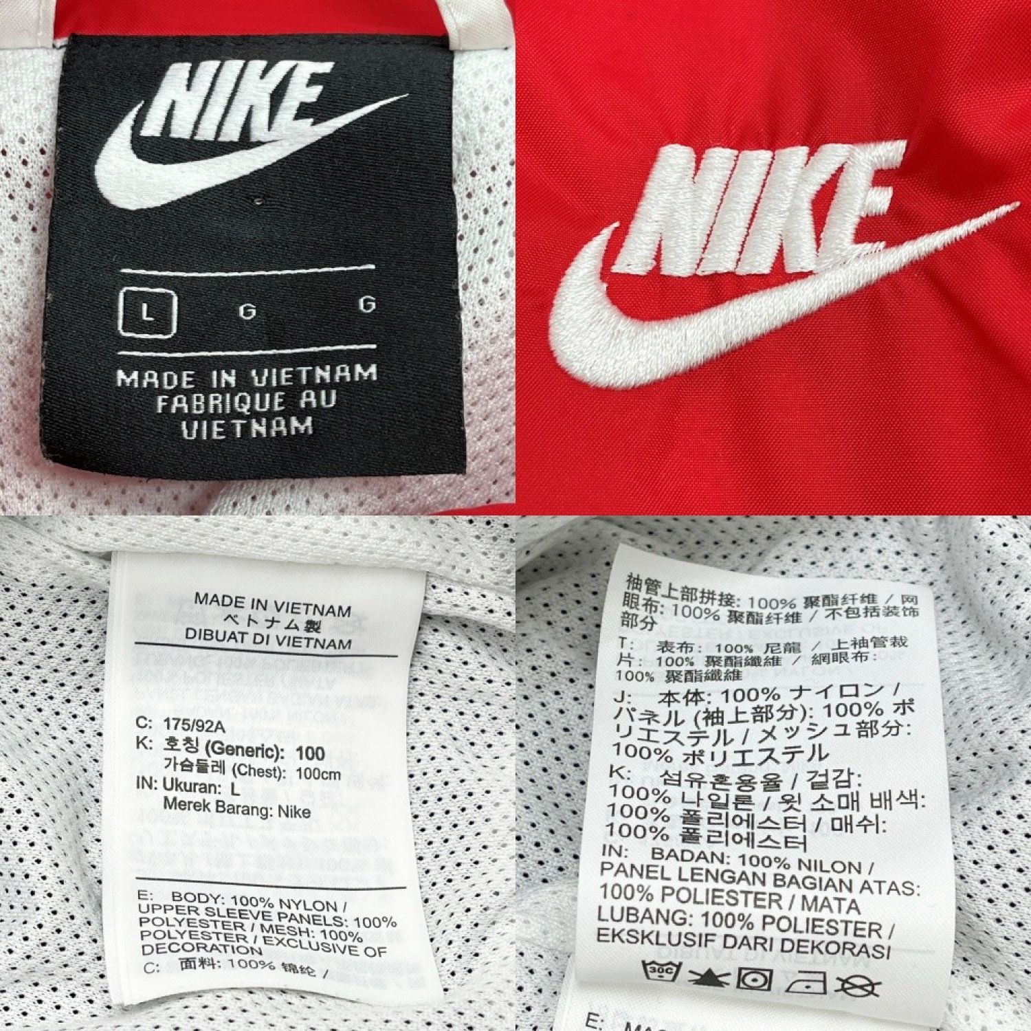 NIKE ナイキ ナイロンジャケット Lサイズ ウィンドランナーフーデット 赤×紺×白