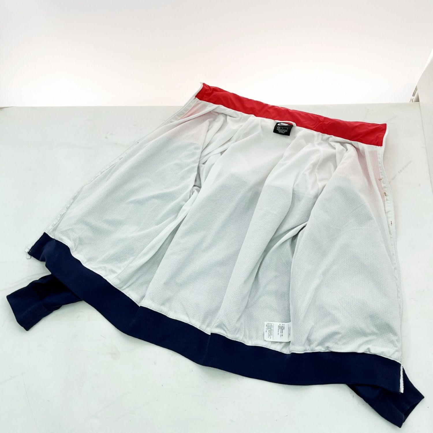 【商品名】中古 NIKE ナイキ ナイロンジャケット Lサイズ ウィンドランナーフーデット 赤×紺×白 Bランク