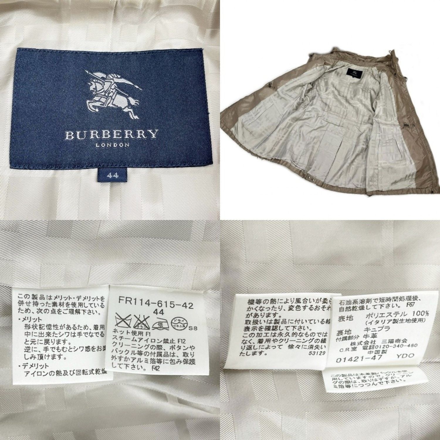 【商品名】中古 BURBERRY LONDON バーバリーロンドン コート サイズ44 沢 襟ギャザー FR114-615-42 レディース ベージュ Cランク