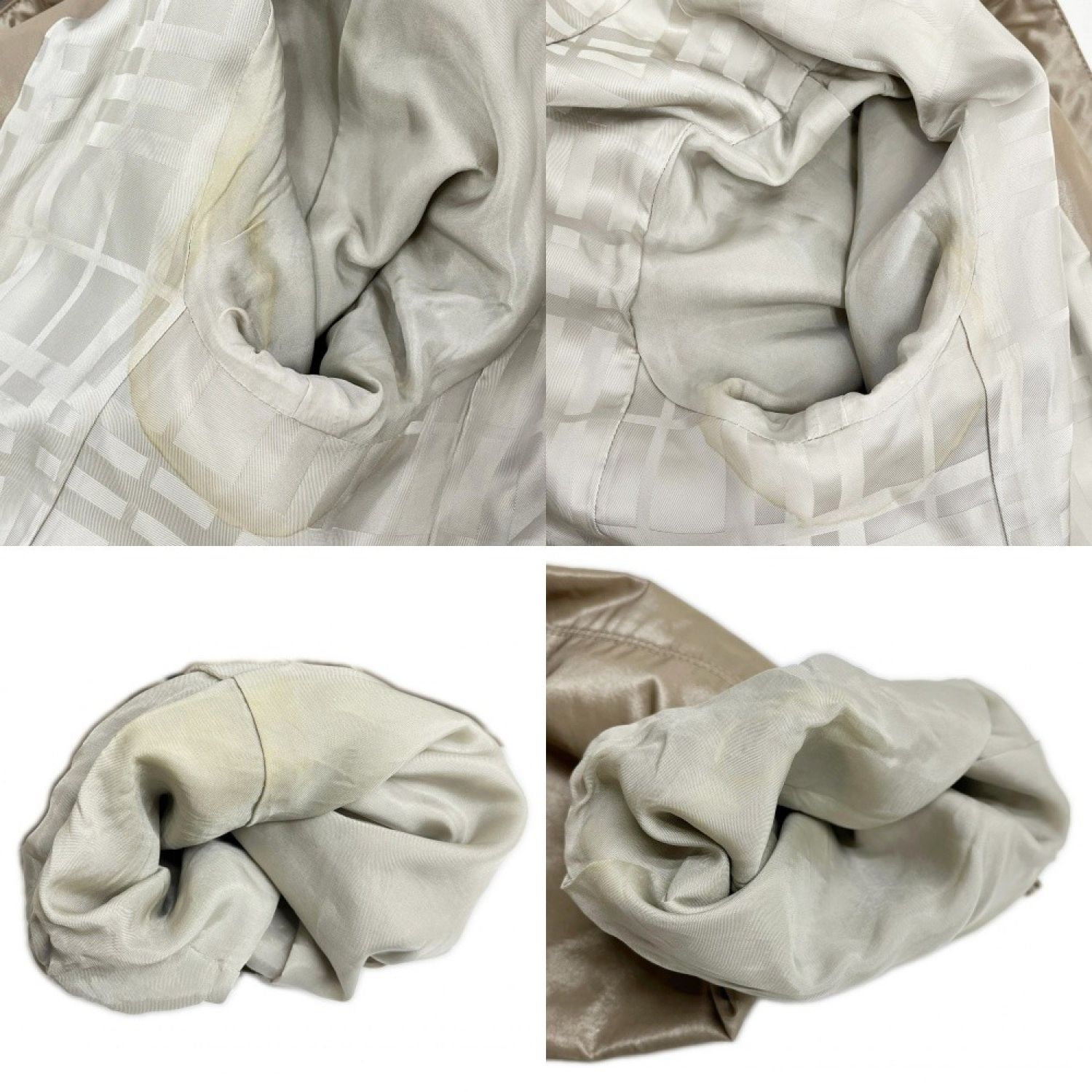 裏地の脇と袖裏にシミがございます。(写真6枚目参照)