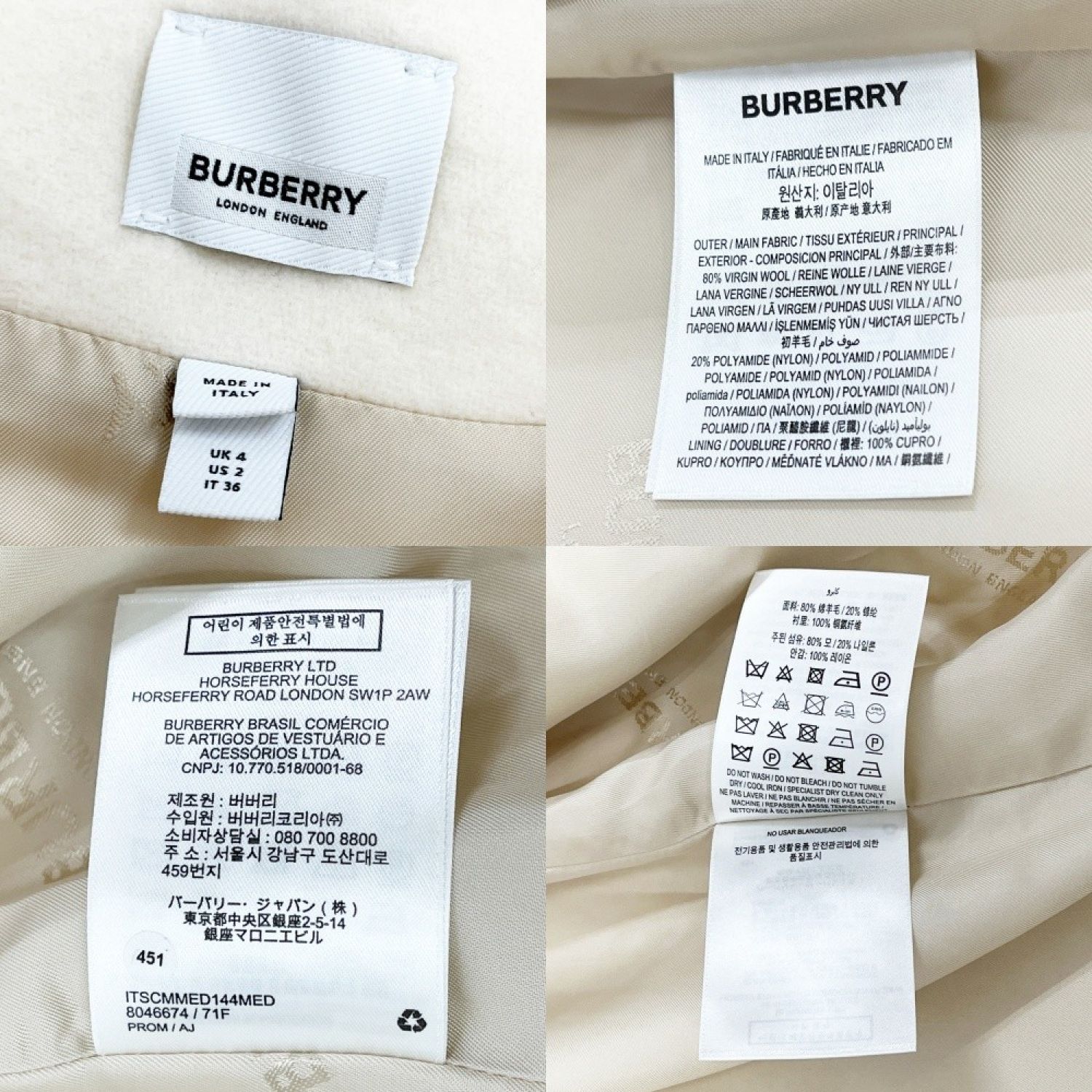 BURBERRY LONDON バーバリーロンドン ラウンドネックコート サイズ36 レディース ホワイト