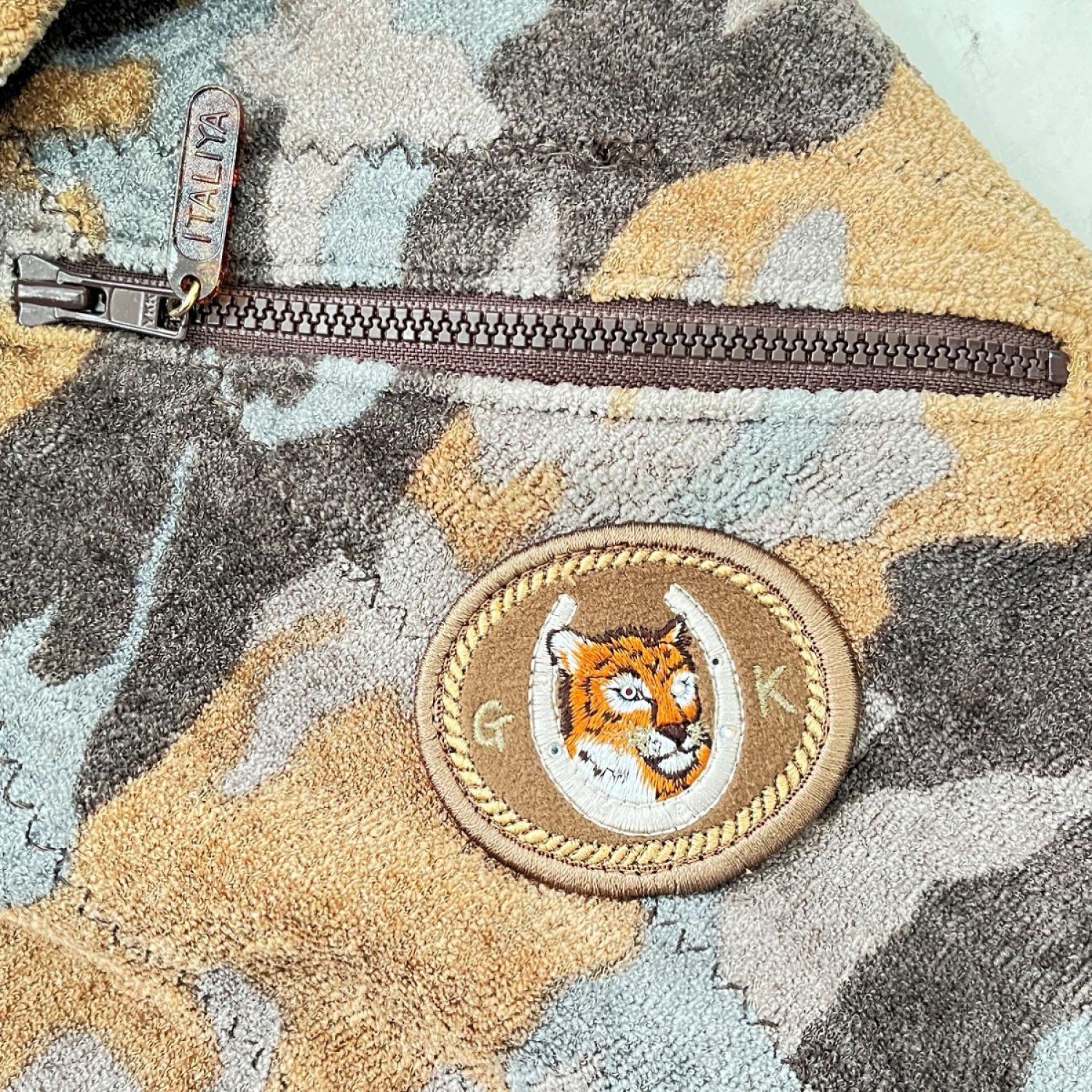 ITALIYA イタリヤ 伊太利屋 フード付ベスト 迷彩 9号 レディース ブラウン