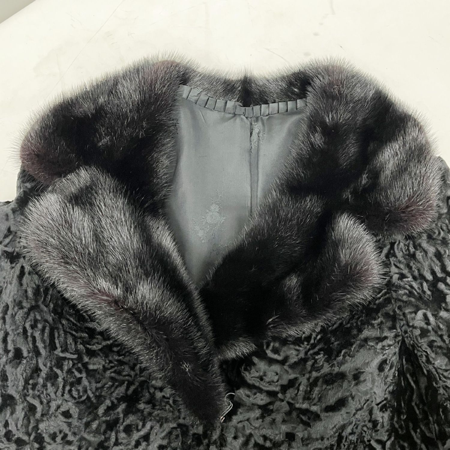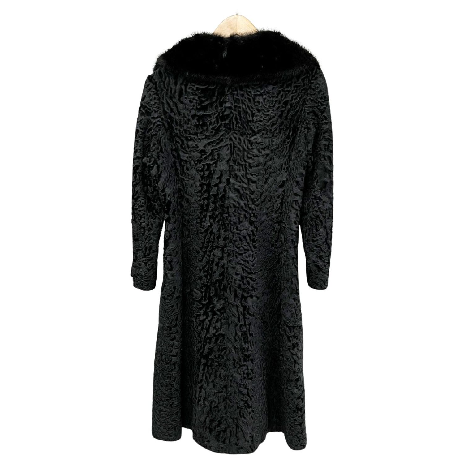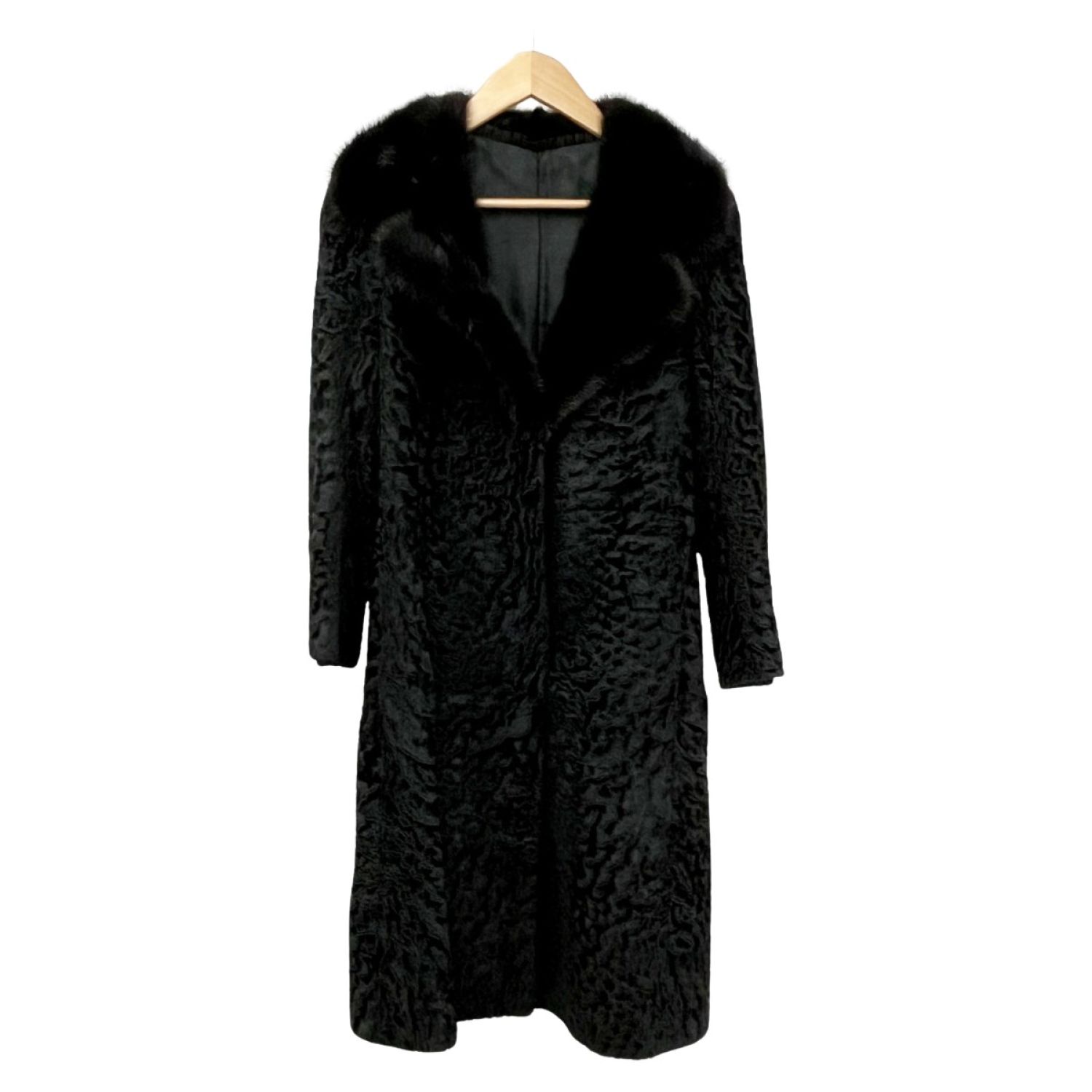 【商品名】中古 glycine グリシン 毛皮ロングコート 襟元ミンク アウター レディース ミセス ブラック Bランク