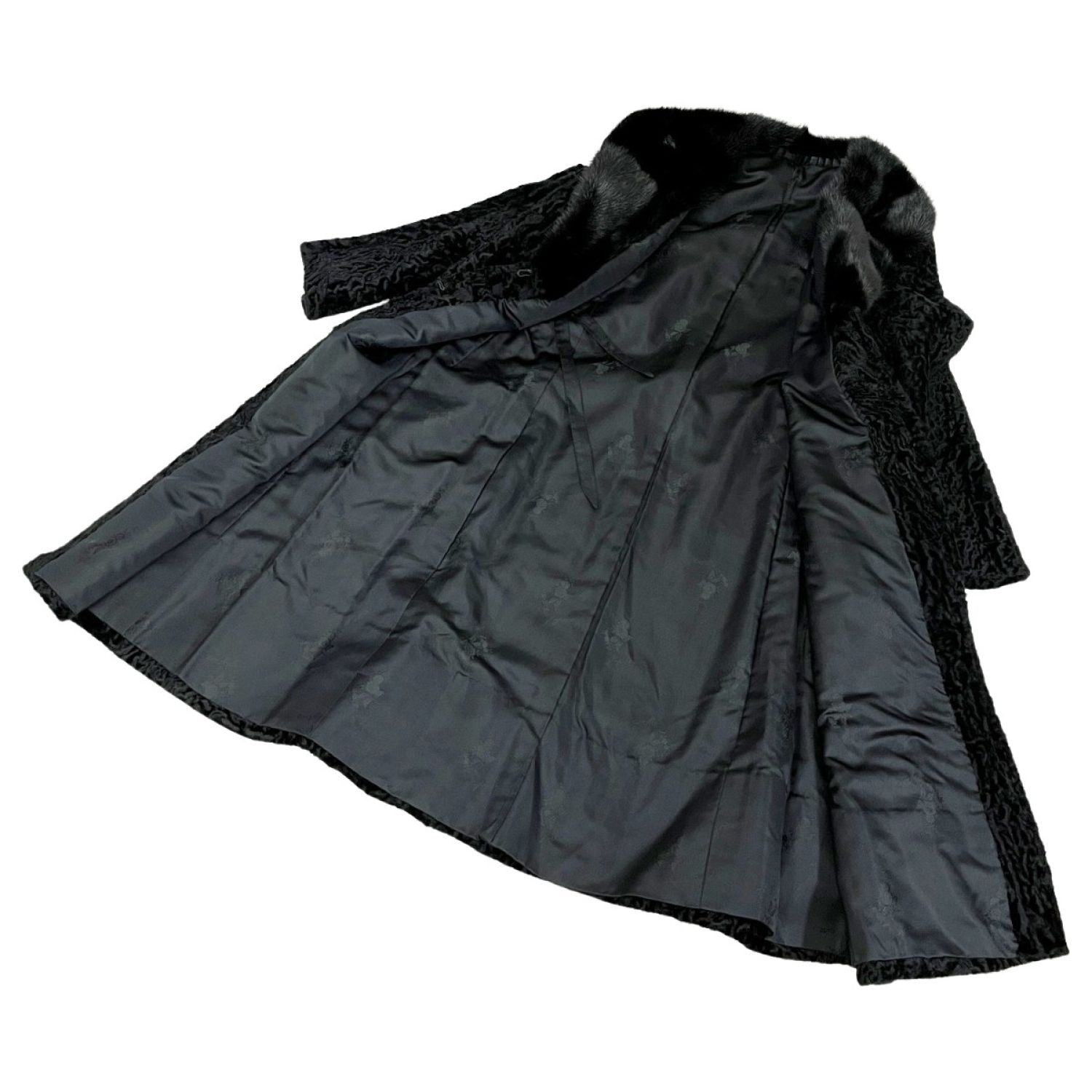 glycine グリシン 毛皮ロングコート 襟元ミンク アウター レディース ミセス ブラック