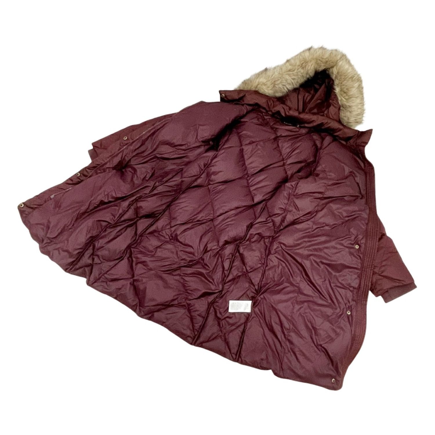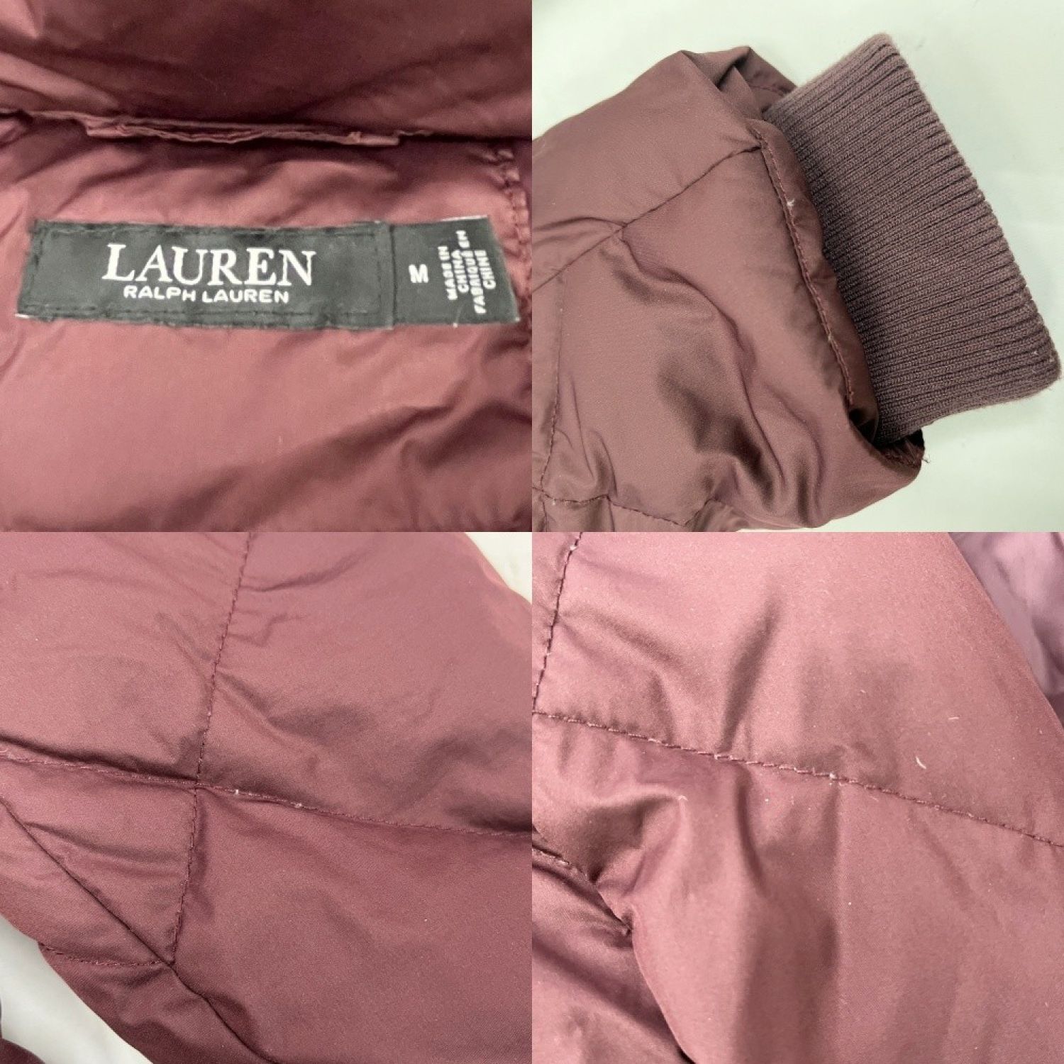 【商品名】中古 LAUREN RALPH LAUREN ダウンコート ロングコート Mサイズ ひし形 ベルト無し アウター ワインレッド Bランク