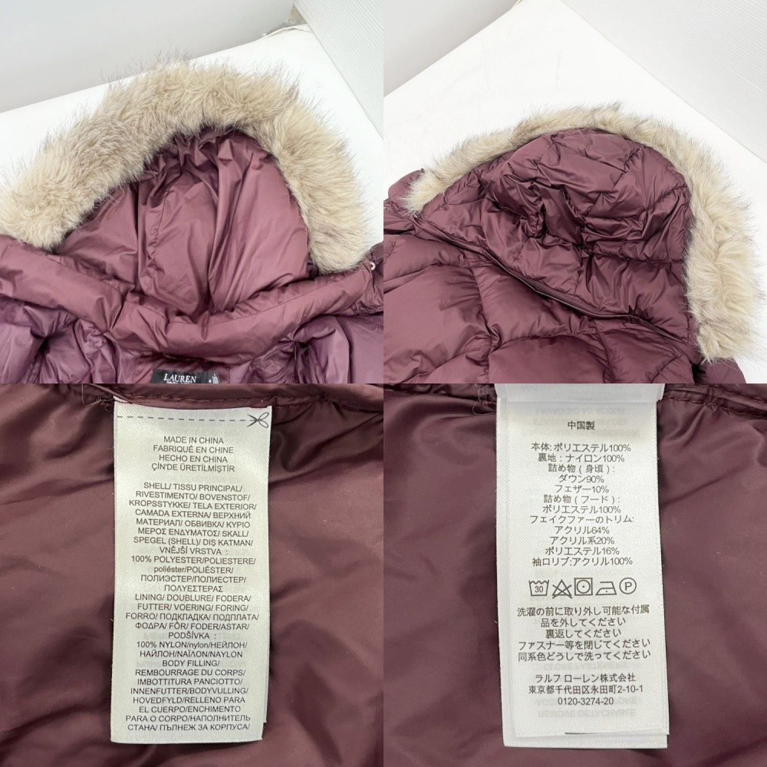 LAUREN RALPH LAUREN ダウンコート ロングコート Mサイズ ひし形 ベルト無し アウター ワインレッド