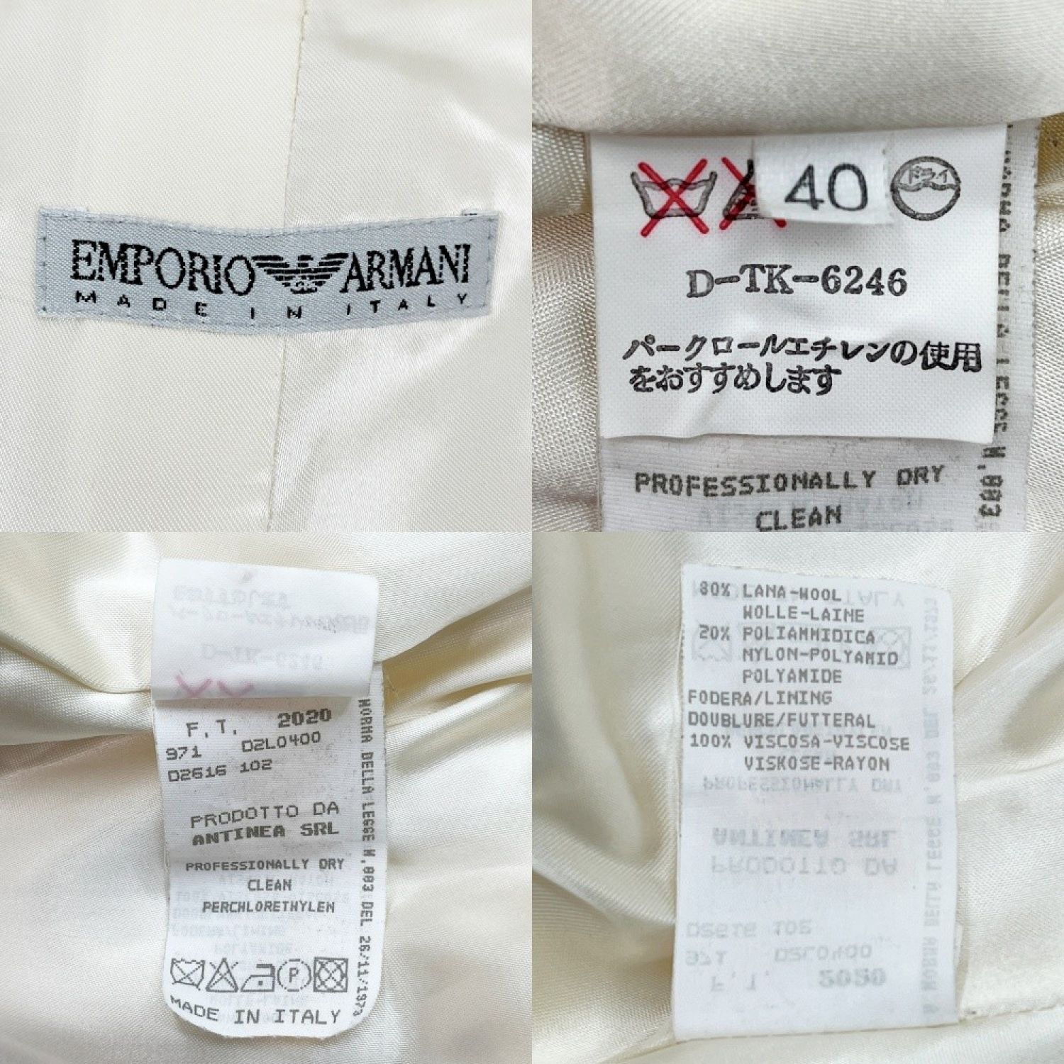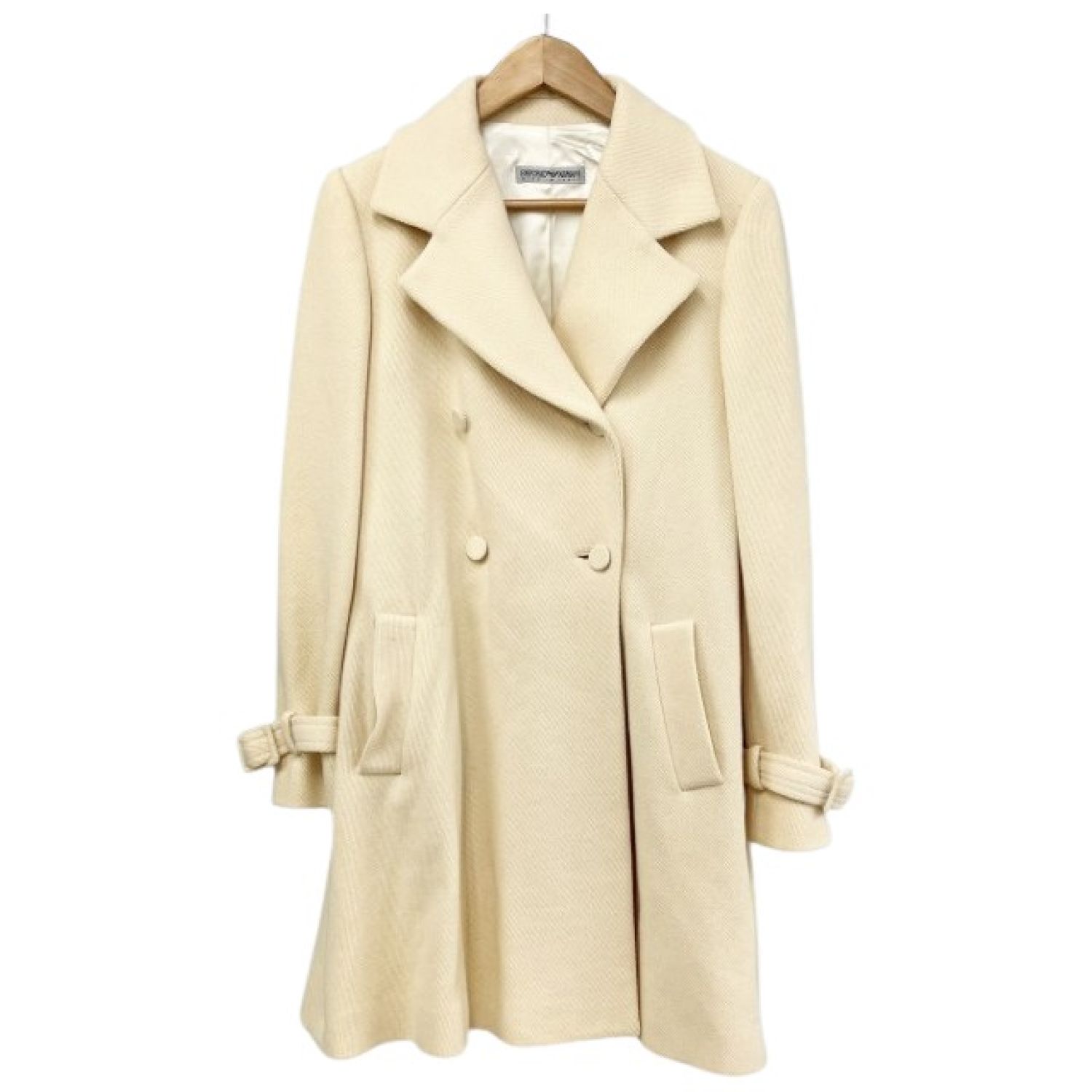 【商品名】中古 EMPORIO ARMANI エンポリオアルマーニ コート サイズ40 Wボタン/ベルト付き アウター レディース アイボリー Cランク
