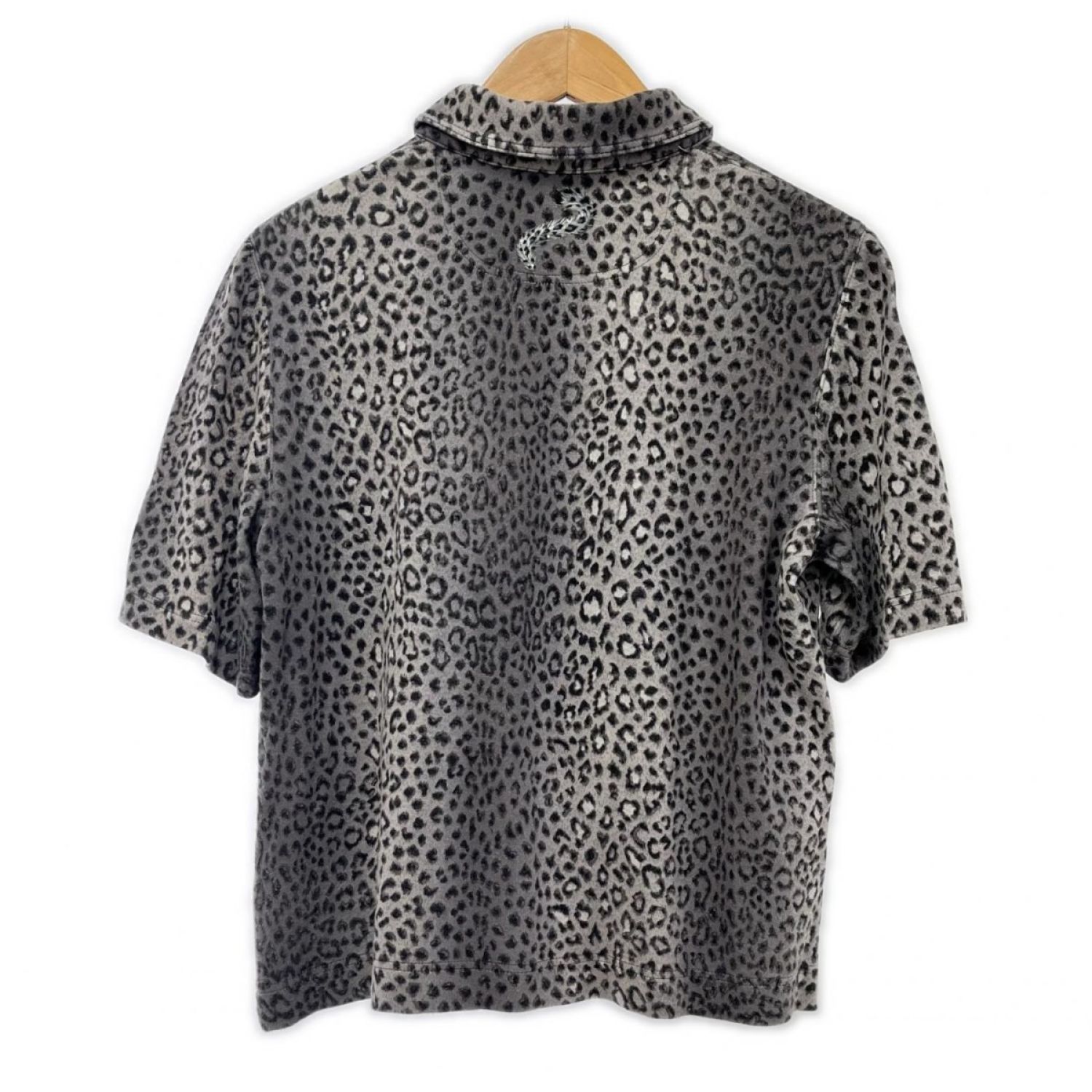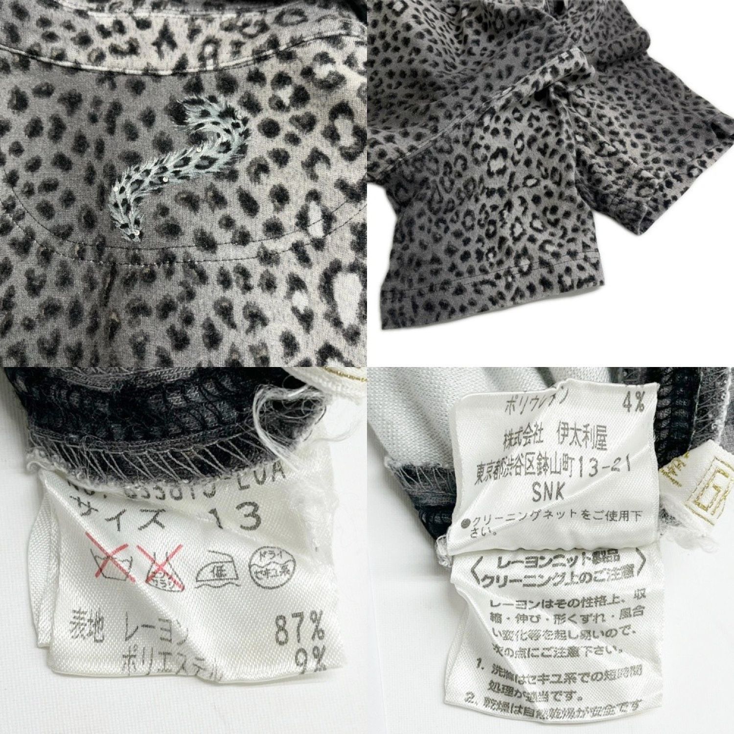 【商品名】中古 ITALIYA イタリヤ 伊太利屋 半袖カットソー 13号 アニマル柄 ヒョウ柄 2ポッケ レディース ミセス ライトグレー Bランク
