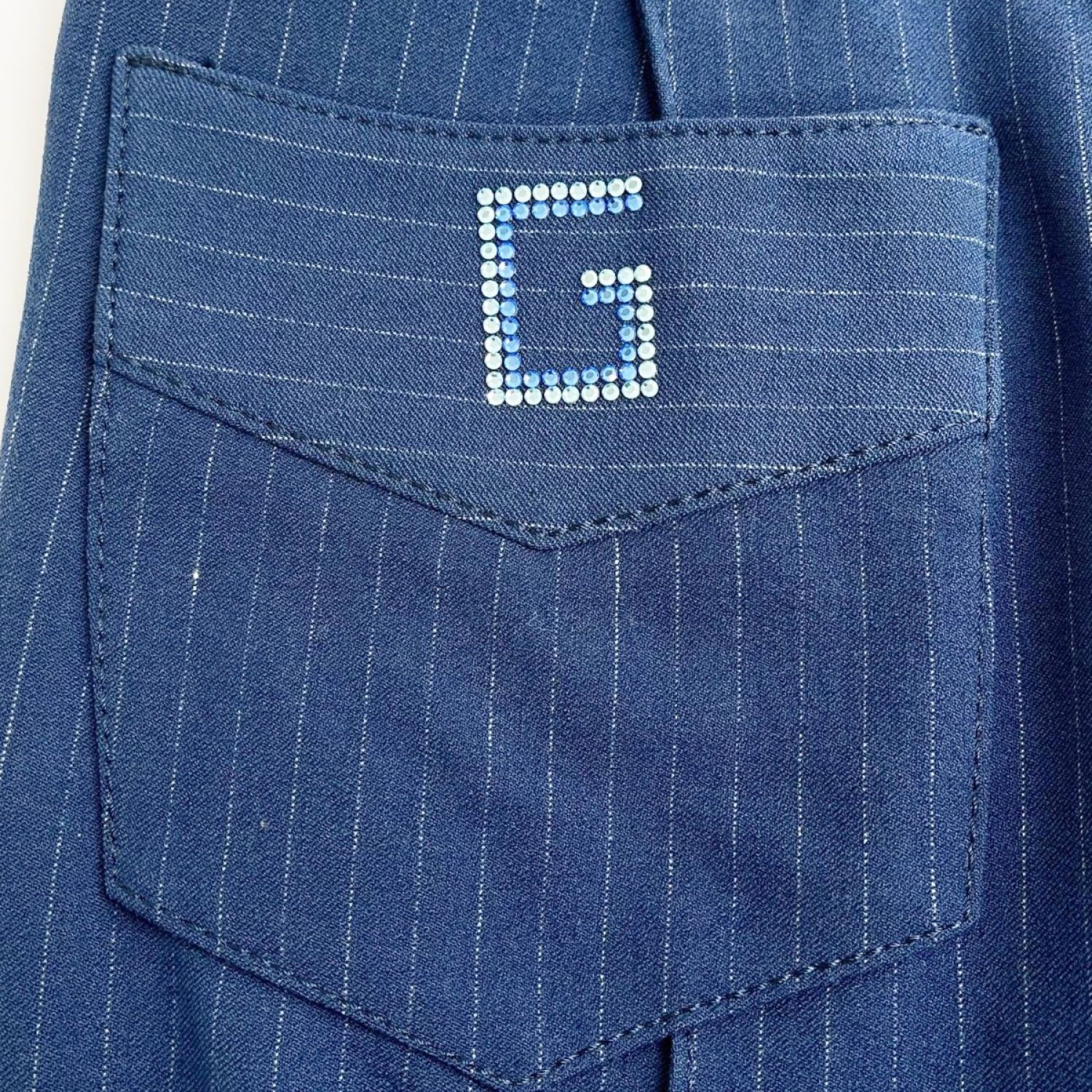 ITALIYA イタリヤ 伊太利屋 パンツ 9号 ストライプ ポッケGK レディース ミセス ブルー