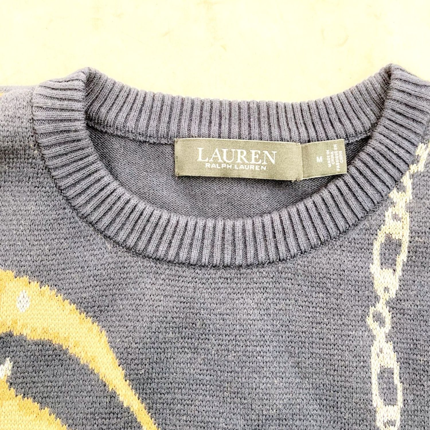 【商品名】中古 RALPH LAUREN ラルフローレン ニット セーター Mサイズ ベルティングプリント メンズ ネイビー Bランク