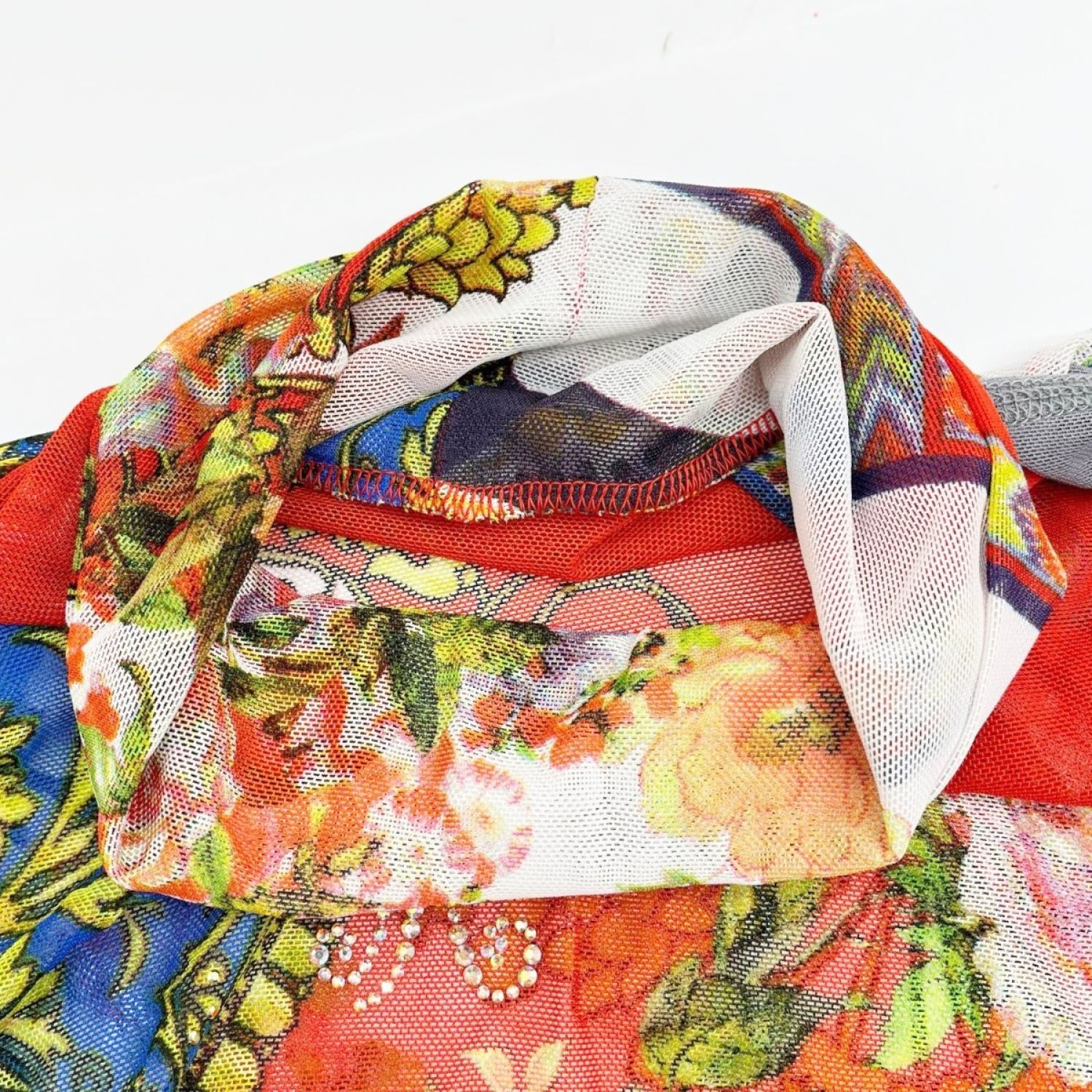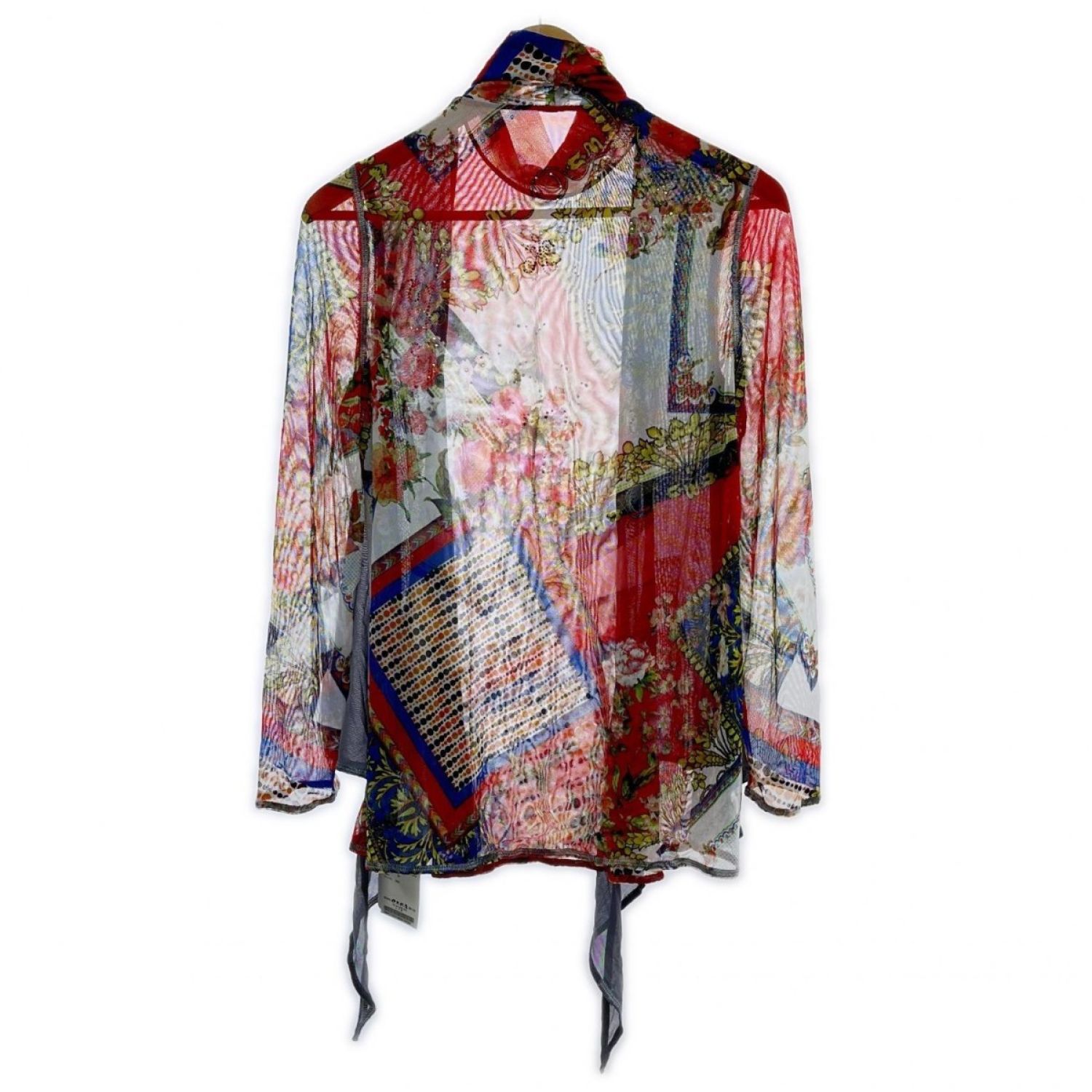 【商品名】中古 ITALIYA イタリヤ 伊太利屋 カットソー 9号 レーシータートルカーデ風 レディース レッド×グレー Bランク