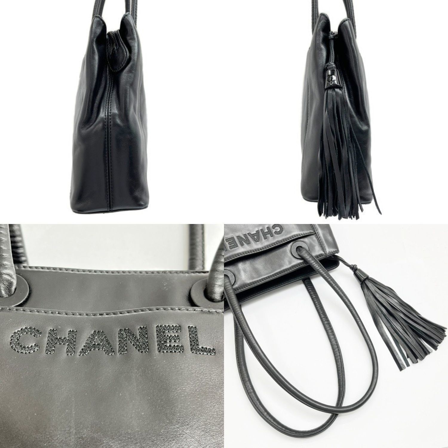 CHANEL シャネル ショルダーバッグ ハンドバッグ ロゴフリンジ 5319963 布袋・ギャランティーカード付 ブラック