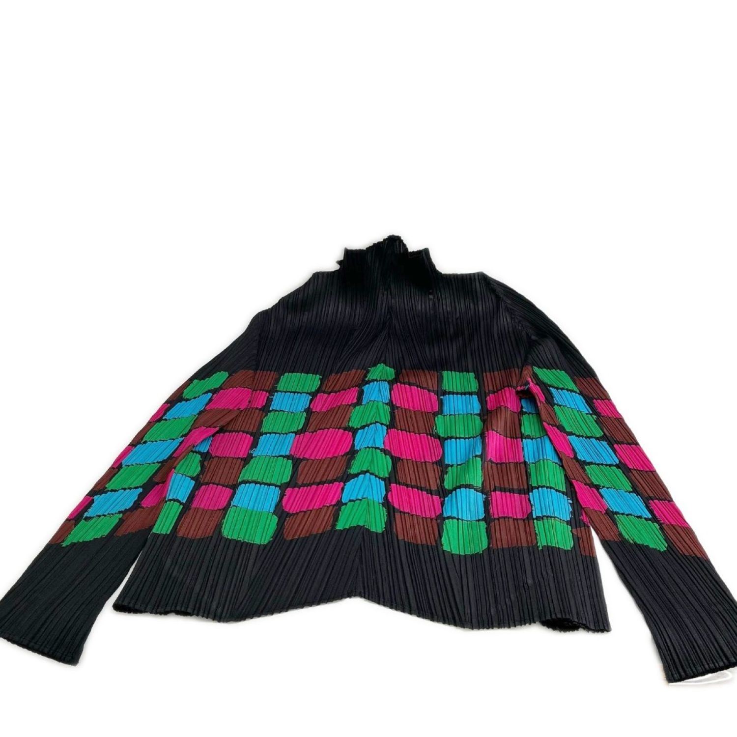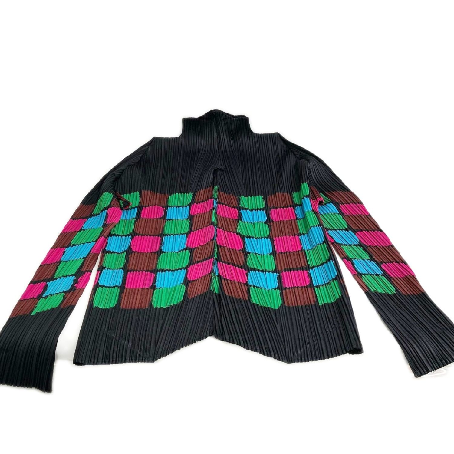 【商品名】中古 ISSEY MIYAKE イッセイミヤケ カラーブロック カーディガン サイズ3 レディース PP23-JO762 ブラック Bランク