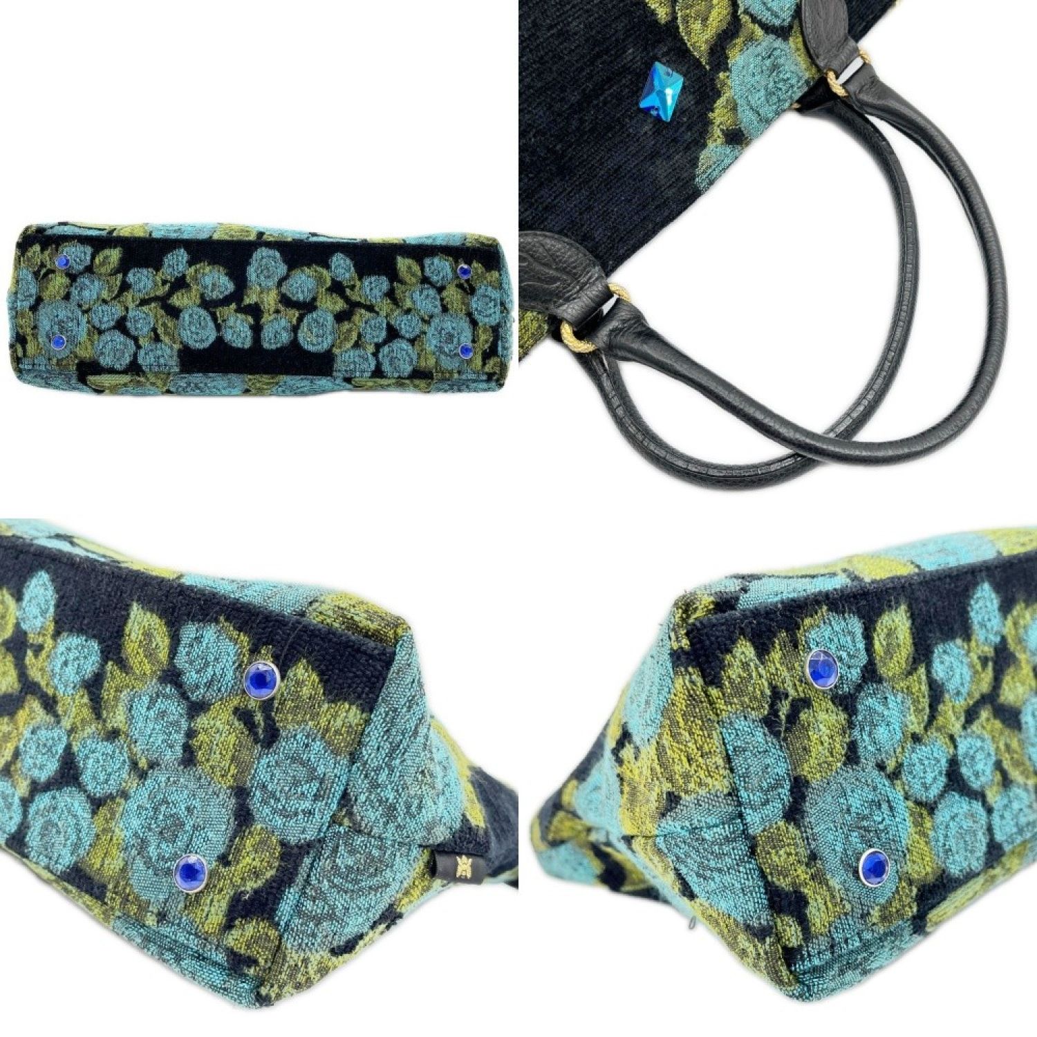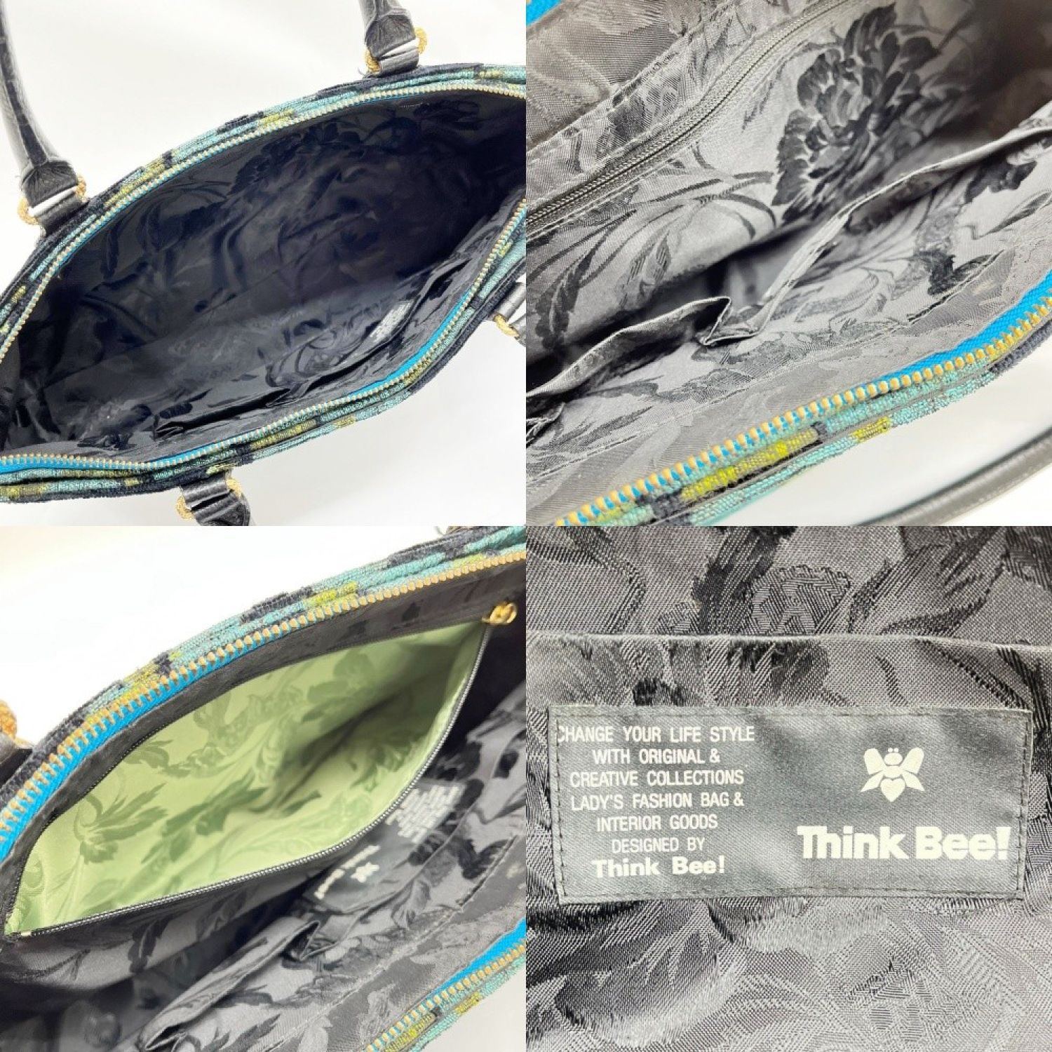 【商品名】中古 Think Bee シンクビー ハンドバッグ 薔薇 バラ レディース ブルー×ブラック Bランク
