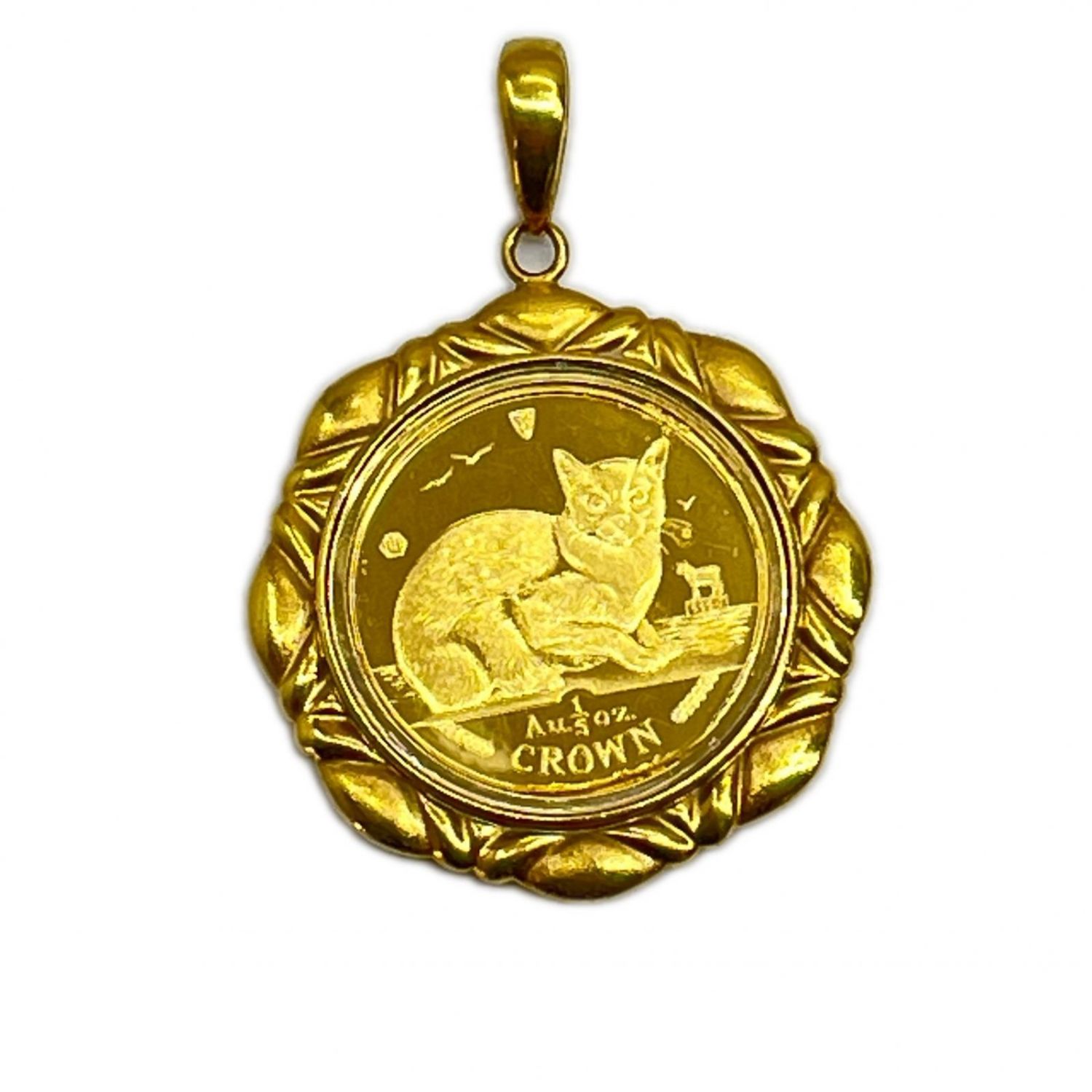 マン島キャットエリザベス24Kコイン/ペンダントトップK18 総重量18.6g(カバー含む)