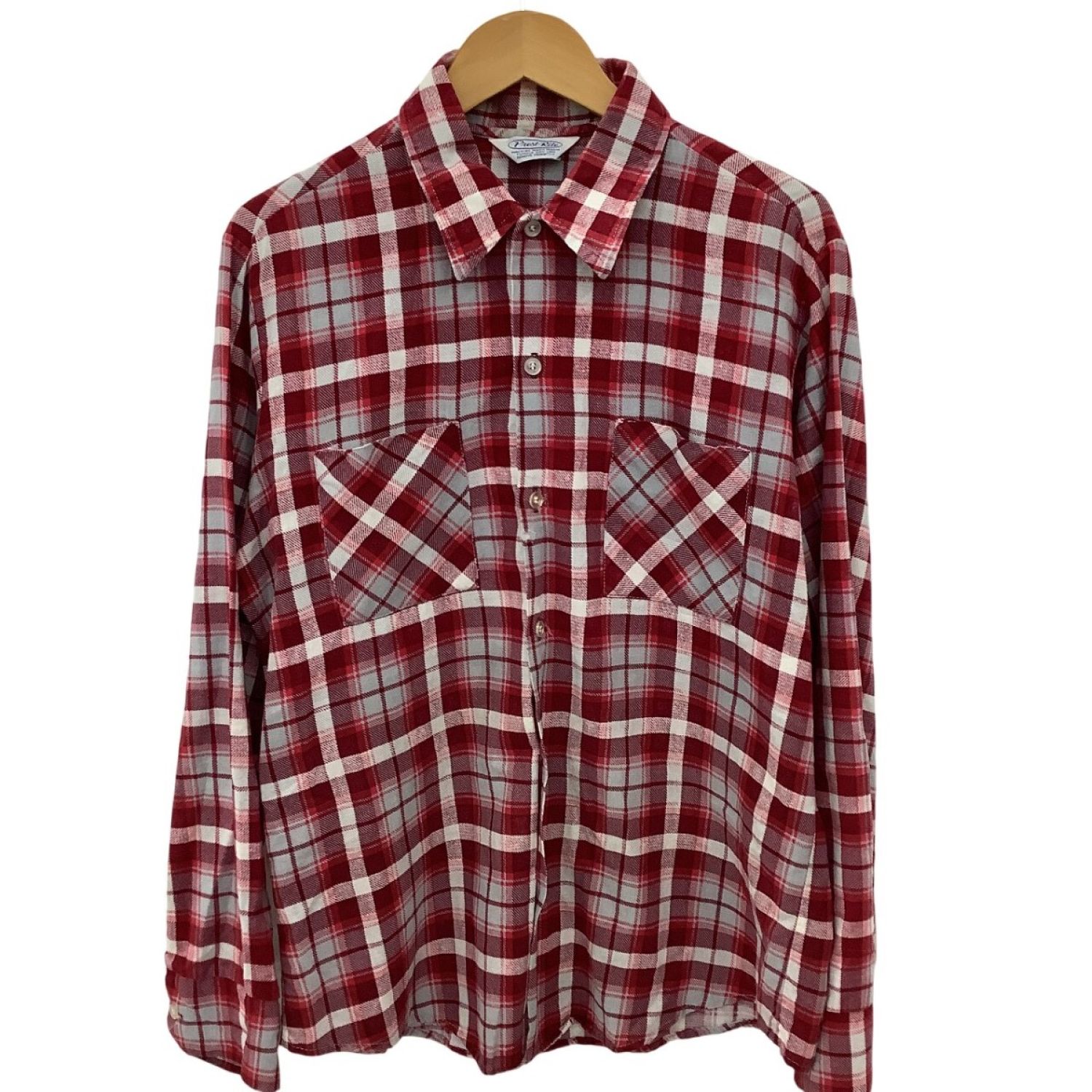 【商品名】中古 Prest Rite Vintage 70年代 古着 メンズ チェック シャツ SIZE L レッド Cランク