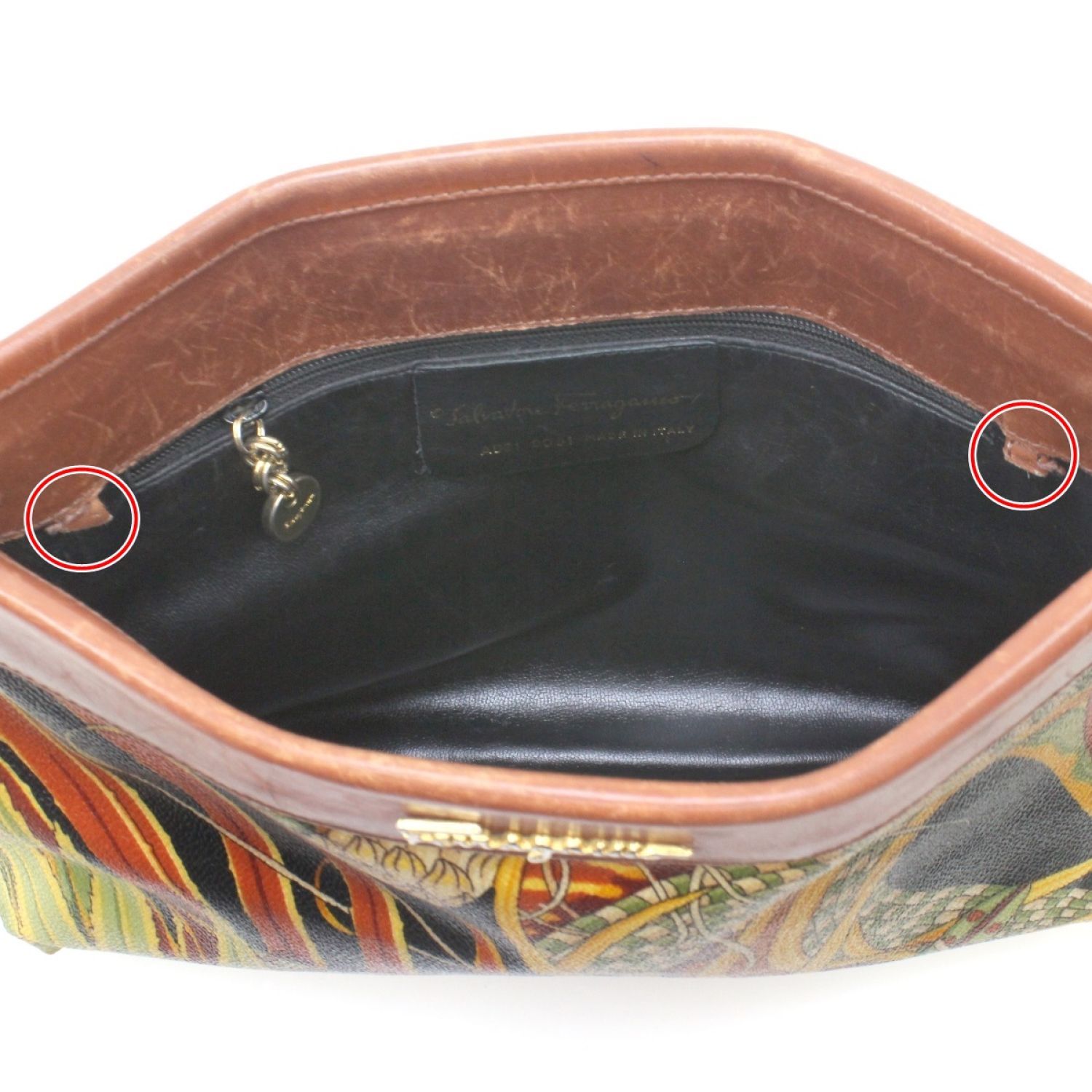 【商品名】中古 Salvatore Ferragamo サルヴァトーレフェラガモ クラッチバッグ AD21《ジャンク品》 AD21 ブラウン×ブラック Dランク