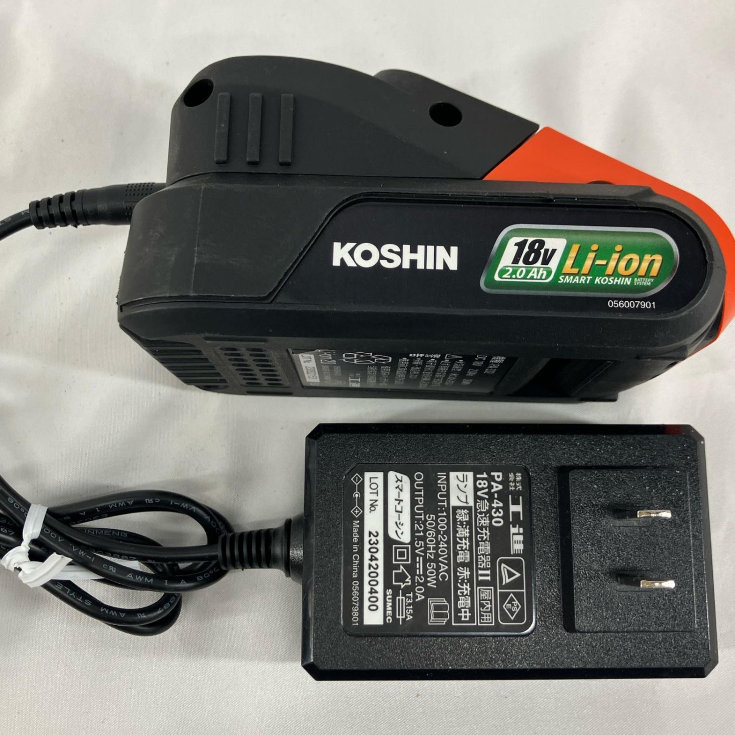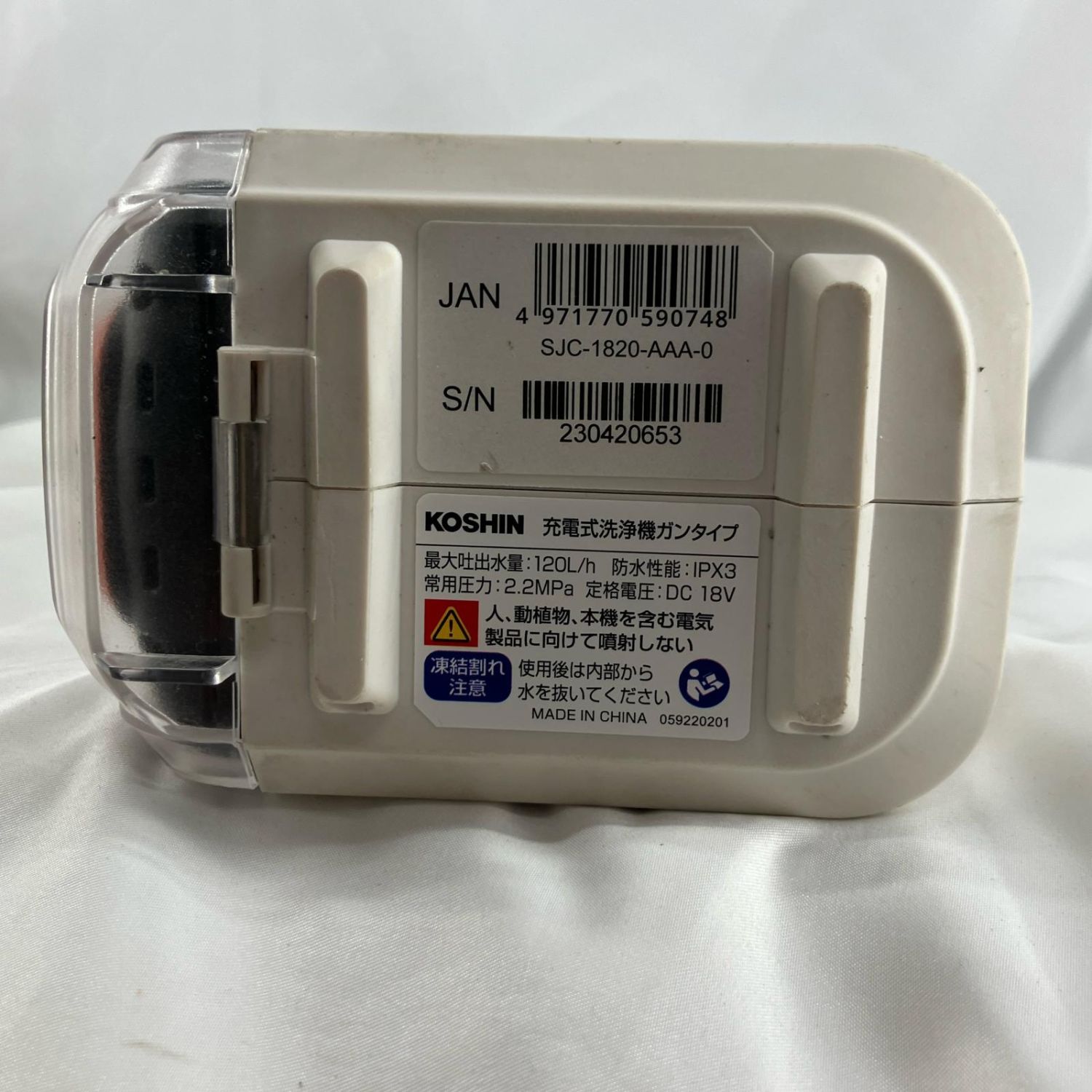 【商品名】中古 KOSHIN 高圧洗浄機 SJC-1820 ホワイト 充電器・充電池2個付 Bランク