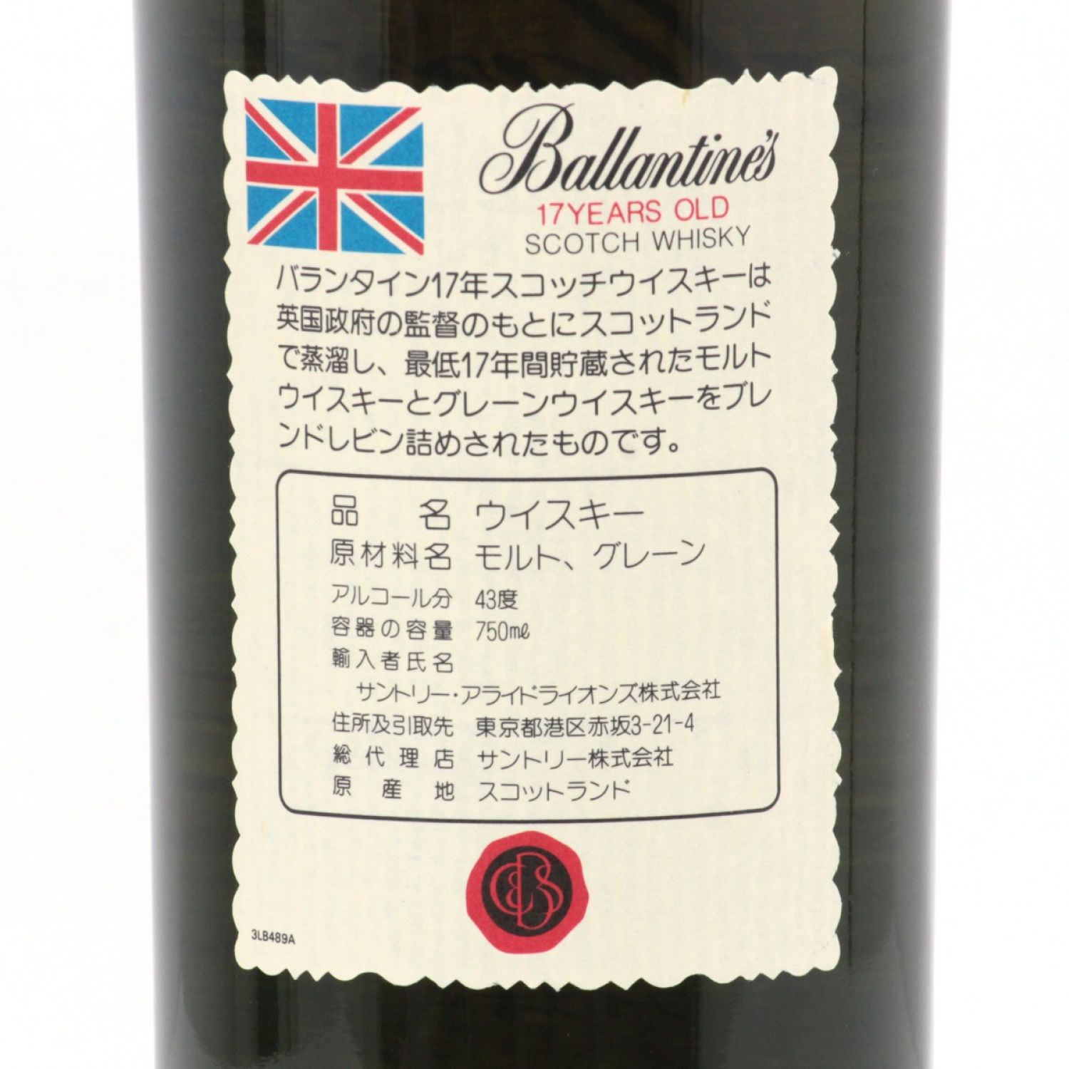 【商品名】中古 Ballantine's バランタイン スコッチウイスキー 17年 750ml 43度 旧ボトル 底箱付 Sランク 未開栓