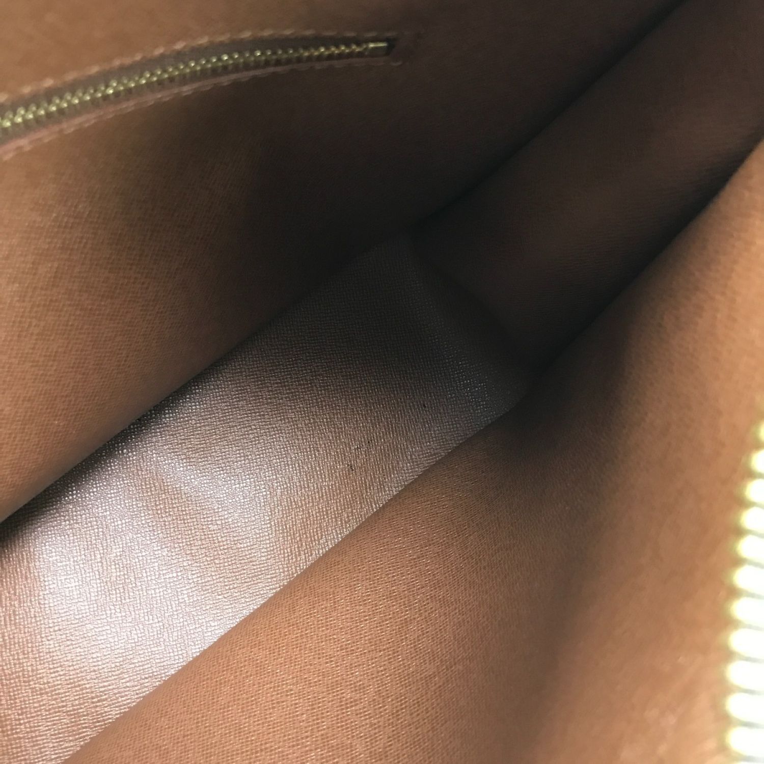 ・ファスナーポケット内部にハガレや劣化があるため使用不可です。