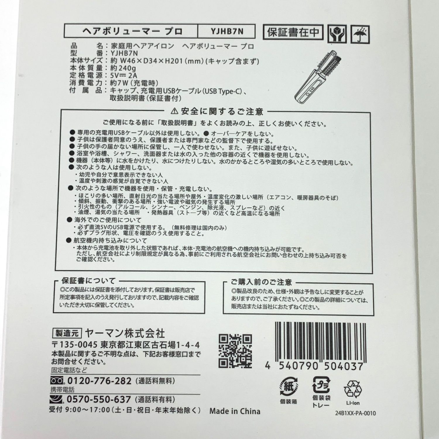 YA-MAN ヤーマン ヘアアイロン ヘアボリューマー プロ YJHB7N