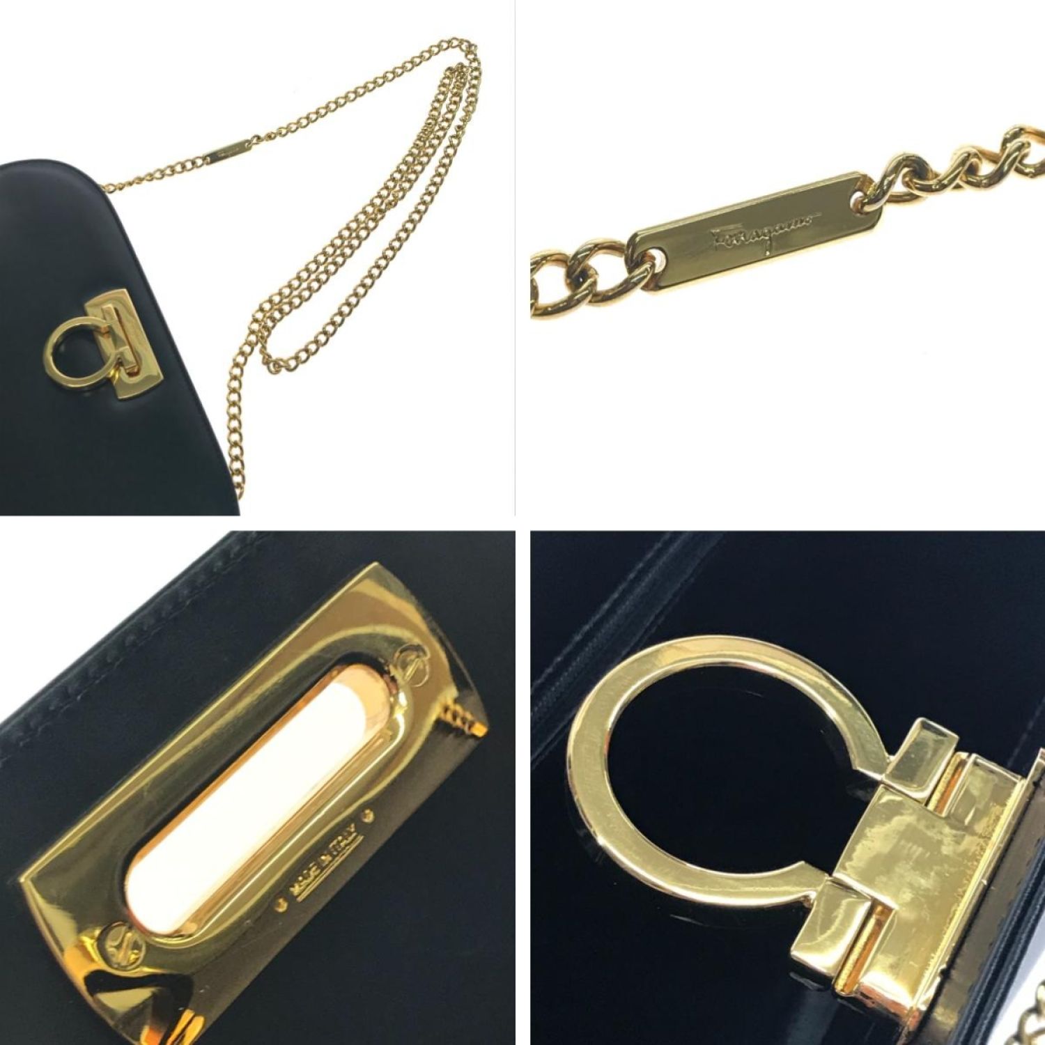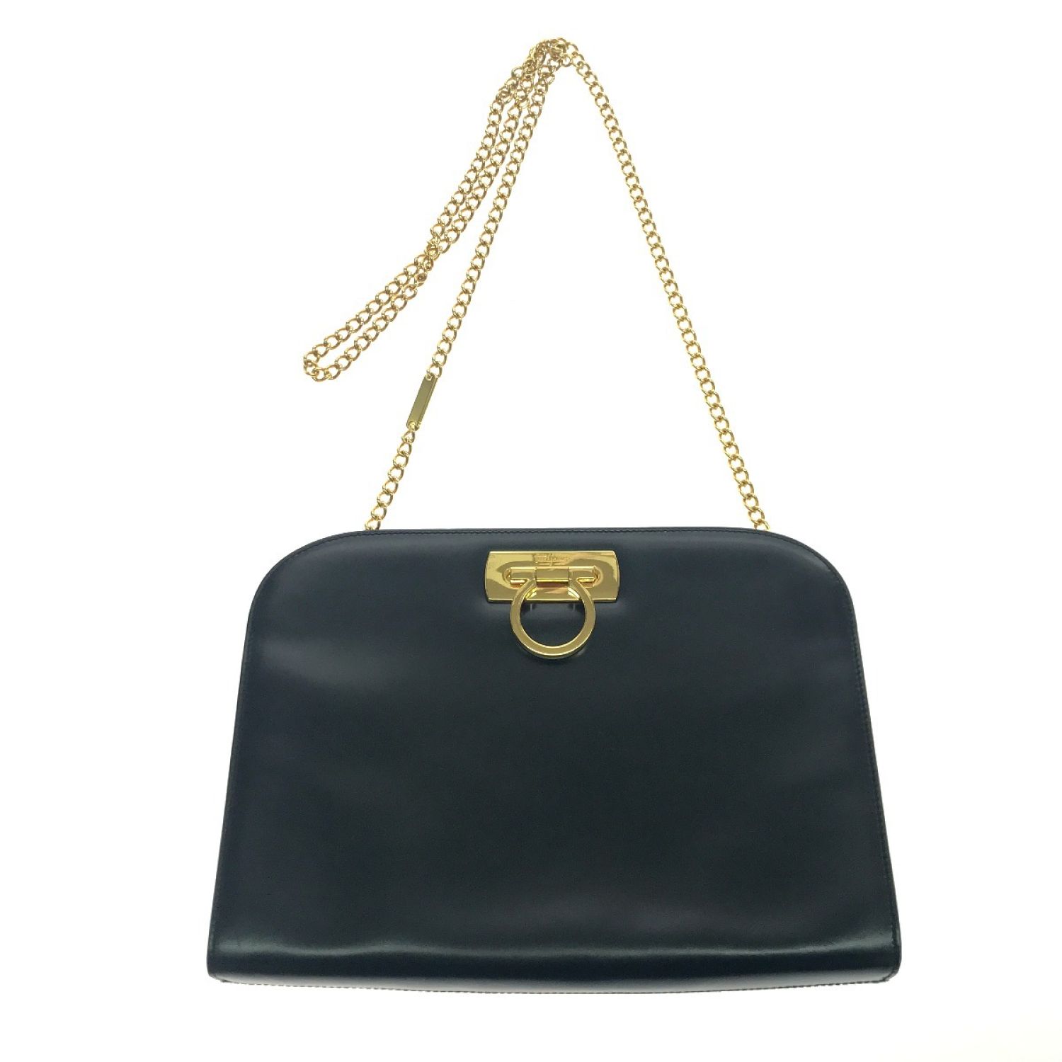 Salvatore Ferragamo サルヴァトーレフェラガモ ショルダーバッグ ガンチーニ ゴールドチェーン チェーンショルダー P21 0587 ブラック
