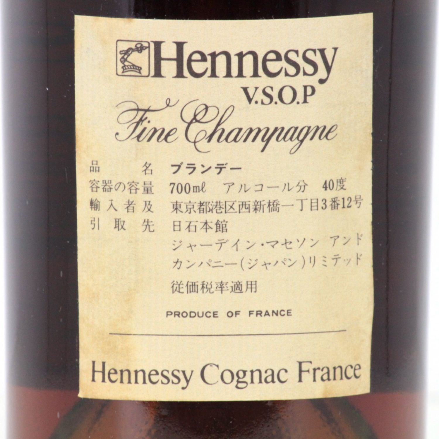 Hennessy ヘネシー フィーヌ・シャンパーニュ V.S.O.P 40度 700ml グリーンボトル 特級ラベル 未開栓