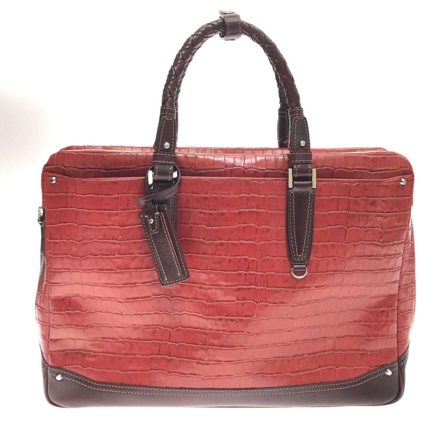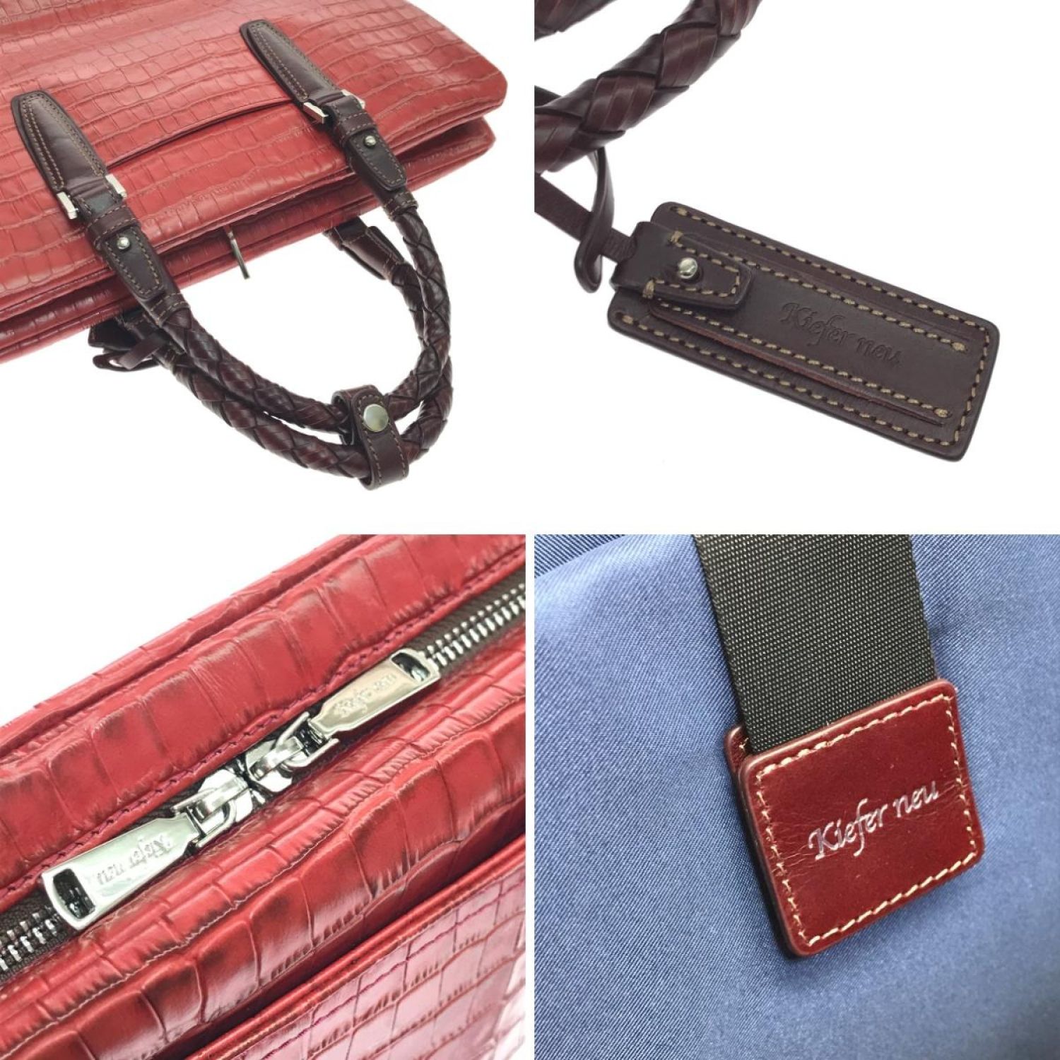 【商品名】中古 KIEFER NEU ビジネスバッグ アモーレ クロコ型押しレザー ショルダーストラップ別売 レッド Aランク