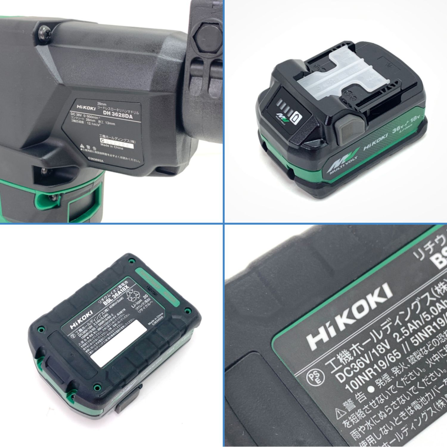 【商品名】中古 HiKOKI ハイコーキ コードレス ロータリ ハンマドリル DH3628DA 36V (2XPZ) グリーン Sランク